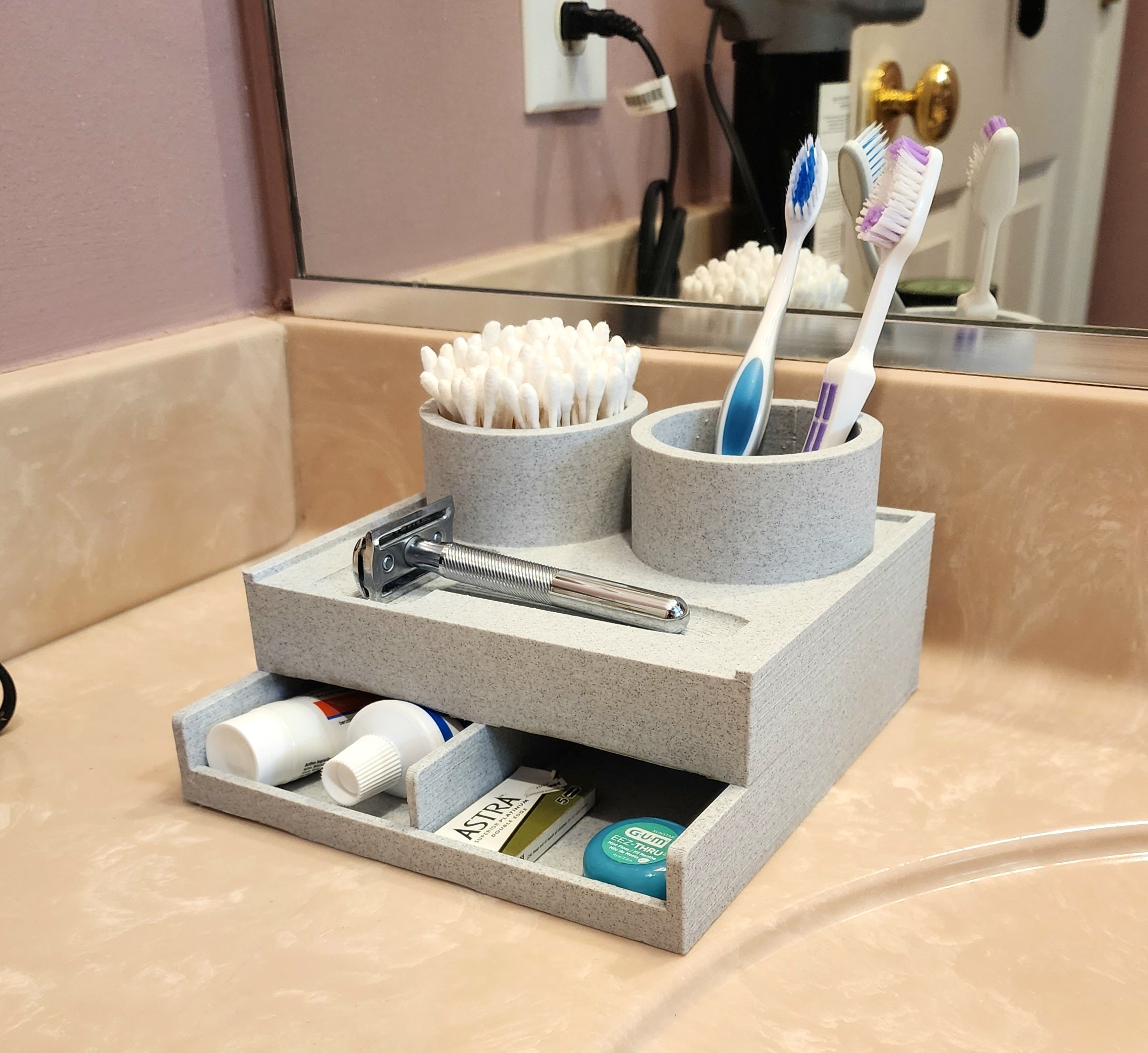 - Integrerad förvaring för tandborstar, rakhyvlar och bomullspinnar