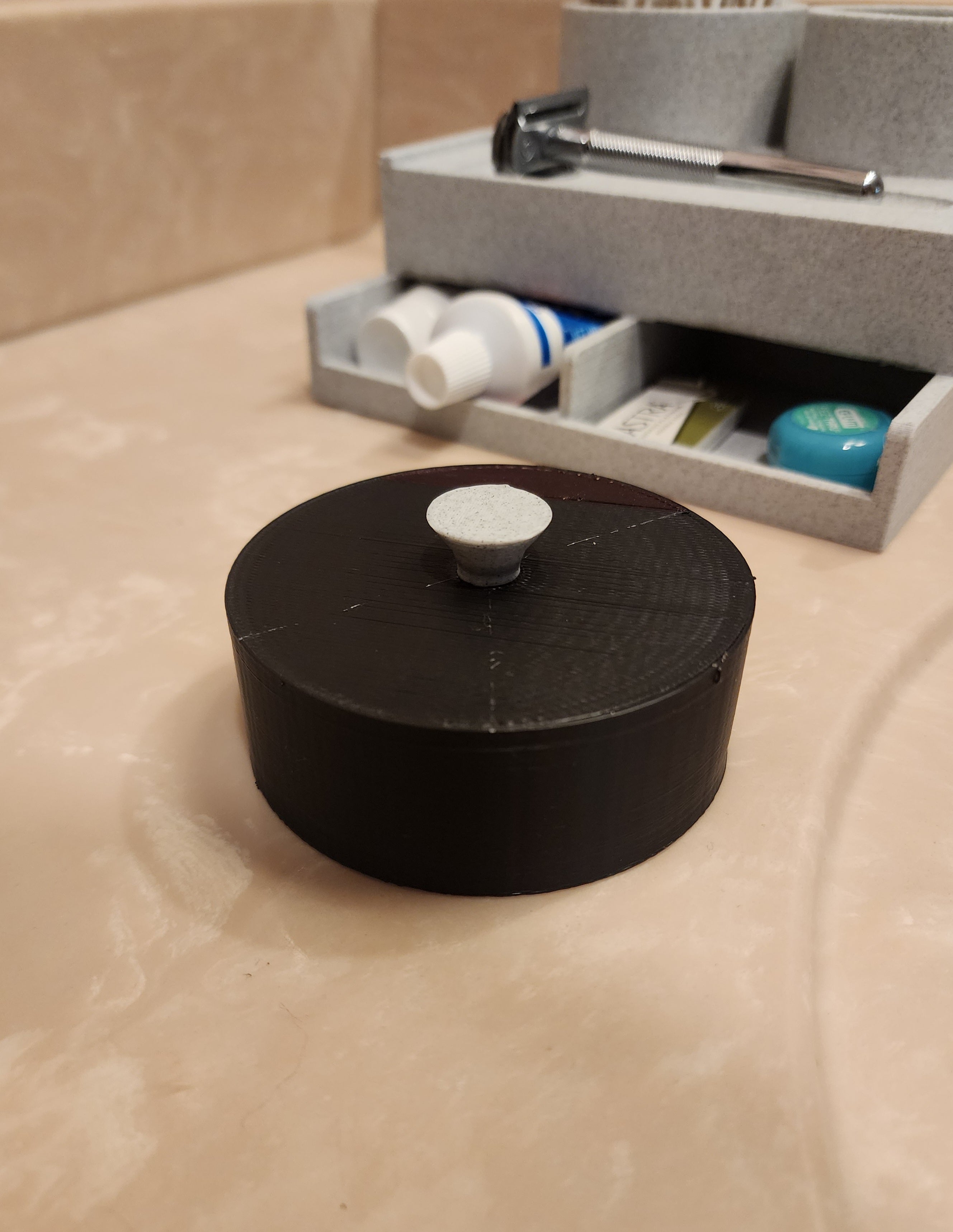 - Praktisk låda för medicin, tandkräm och extra rakblad