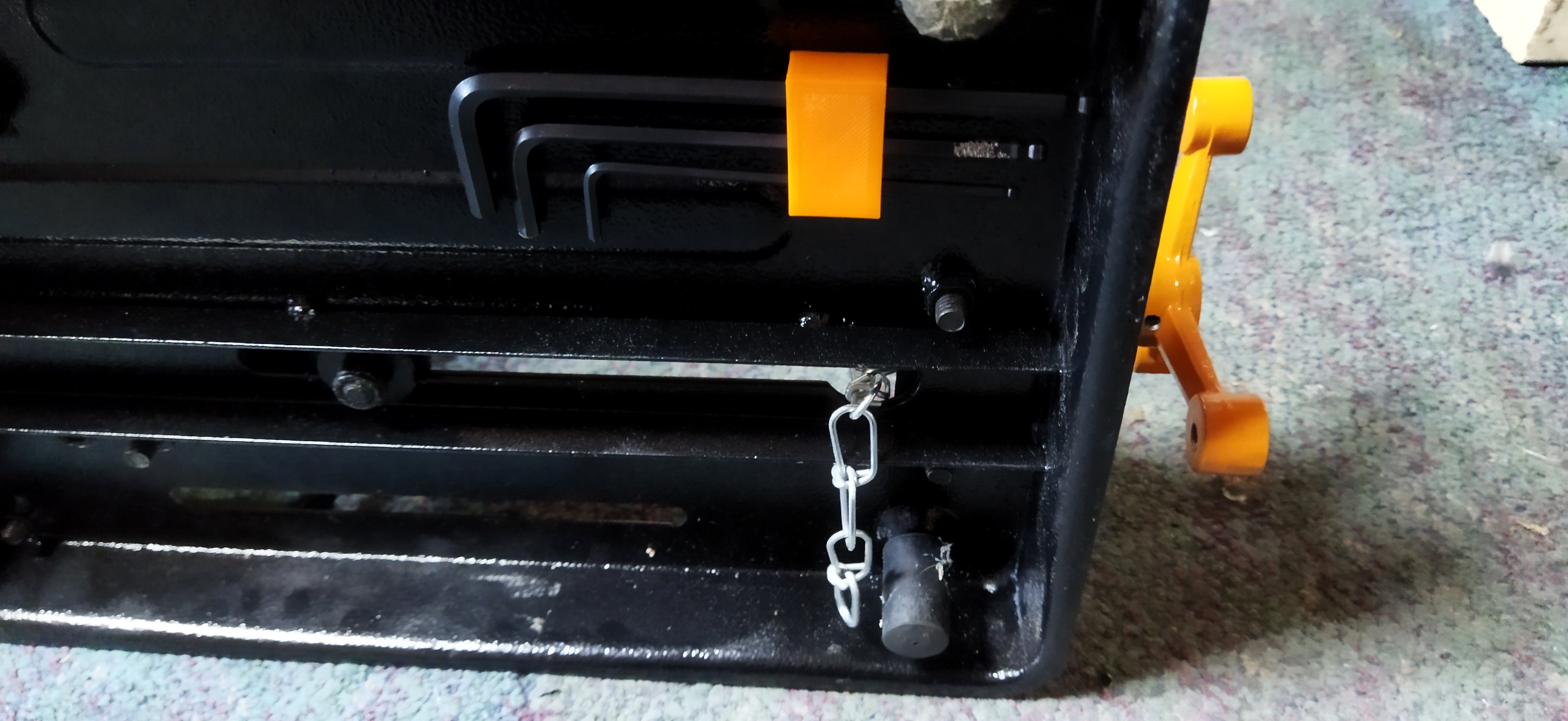 Detta är en enkel insexnyckelhållare. Perfekt för din Evolution Rage4 geringssåg, eftersom denna hållare gör att du inte behöver leta efter dina lösa insexnycklar varje gång du behöver byta bladet eller justera något på sågen. Hållaren fästs enkelt i botten av maskinen med varmt lim.