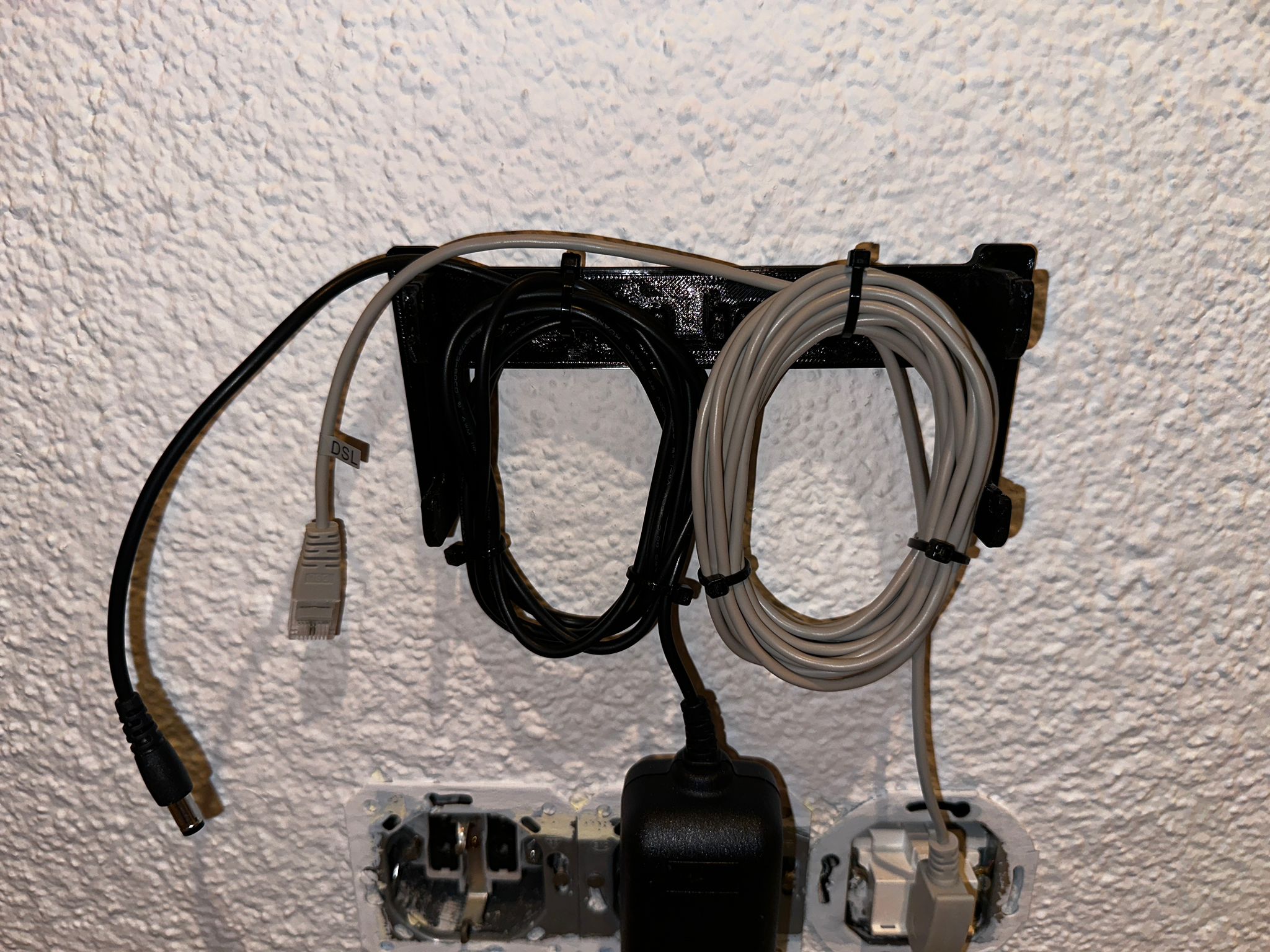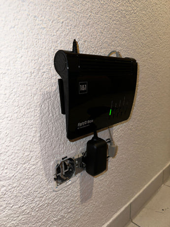 Detta väggfäste är utformat för att hålla din FRITZ!Box 7530 AX-router säkert på plats och optimera din nätverksinstallation. Fästet låter dig montera din router både vertikalt och horisontellt, vilket ger stor flexibilitet vid placering. Ramen är utrustad med små flikar som gör det enkelt att samla och organisera kablarna med hjälp av buntband. Detta bidrar till en snygg installation och frigör värdefullt skrivbordsutrymme, samtidigt som routern är optimalt placerad för signalstyrka och tillgänglighet.