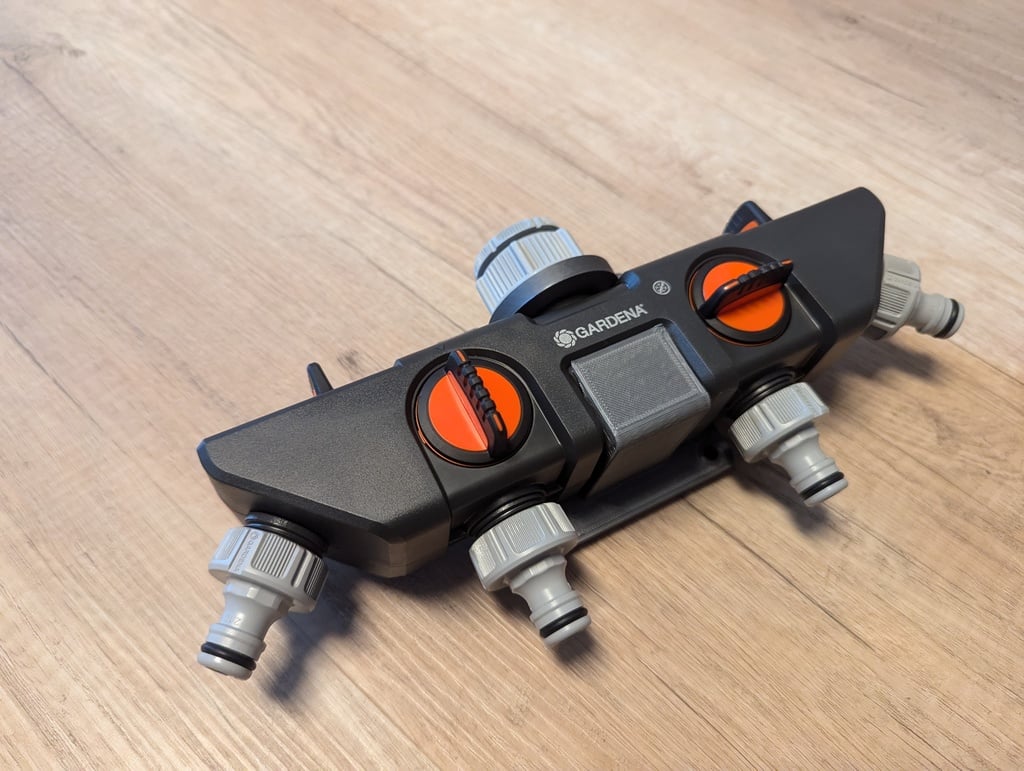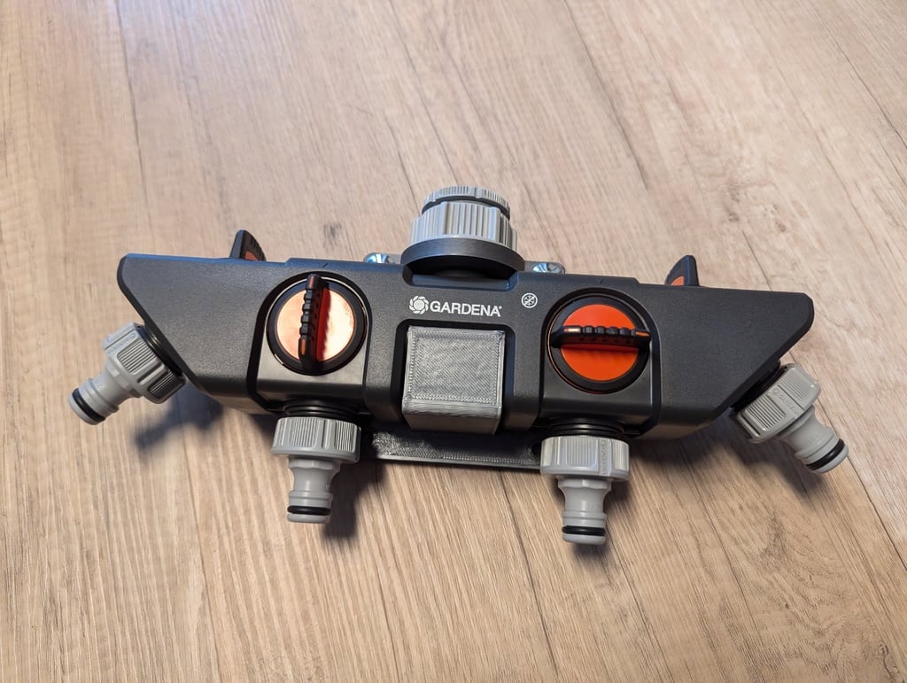 - Utformad för Gardena 4x-fördelare: Ett väggfäste speciellt tillverkat för att passa en Gardena 4x-fördelare.