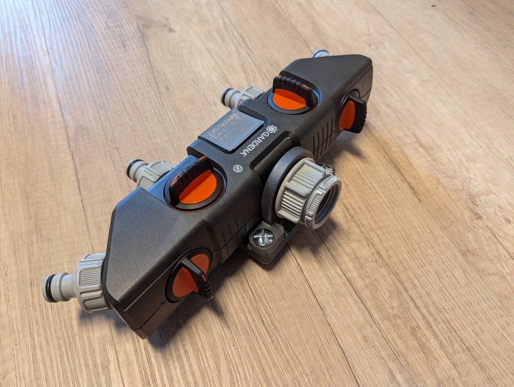 OBS: Detta är endast fästet för en Gardena 4x-fördelare. Gardena 4x-fördelare ingår inte.