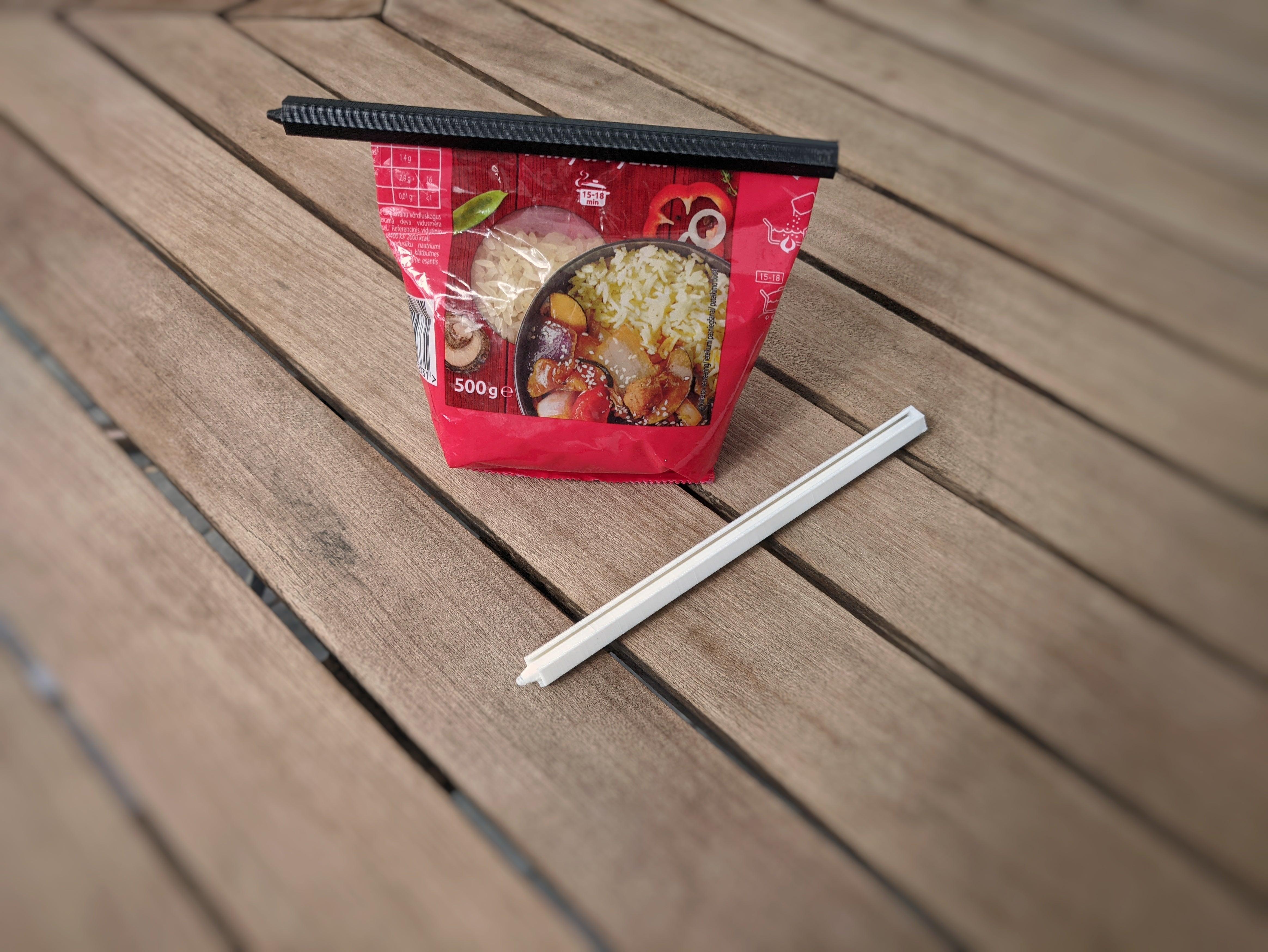 En enkel glidpåsklämma inspirerad av Gripstick . Det här klippet hjälper till att hålla dina väskor stängda och organisera dem bättre. Den glider lätt på och av och fungerar bra med olika typer och storlekar av plastpåsar.