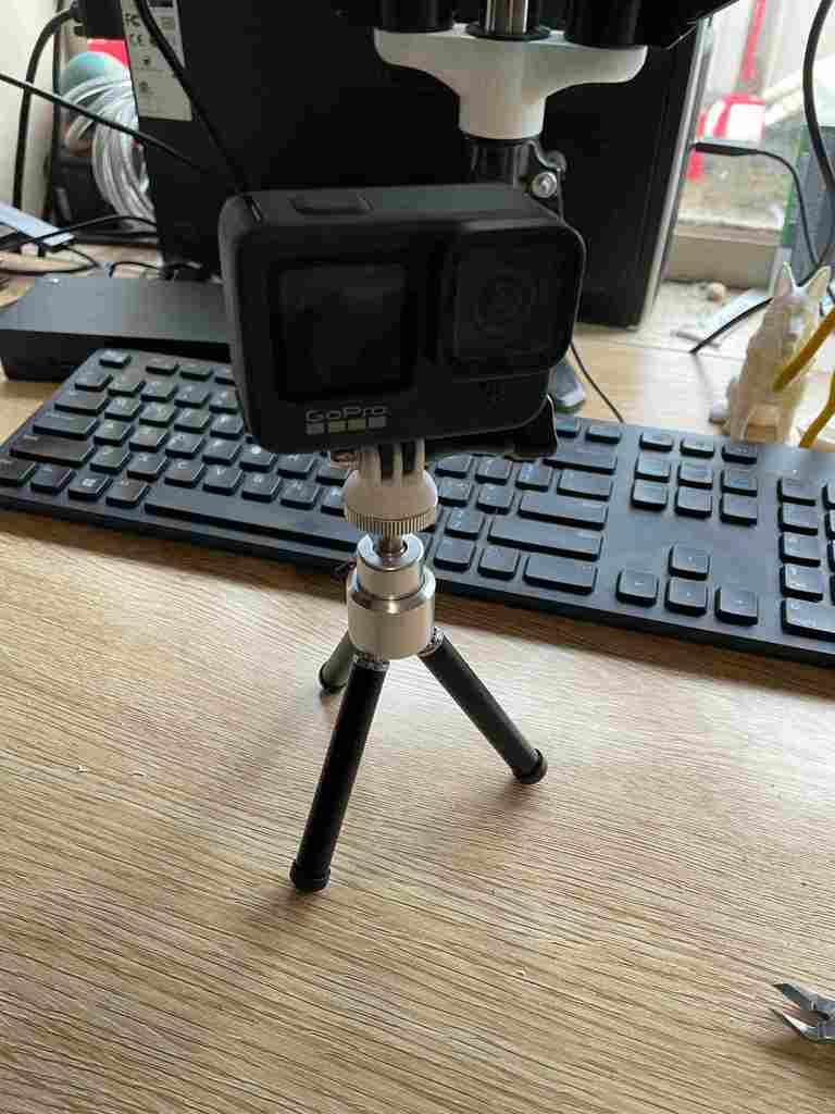 Adaptern ansluter din GoPro-kamera och ett vanligt 1/4" stativ för användning som webbkamera.