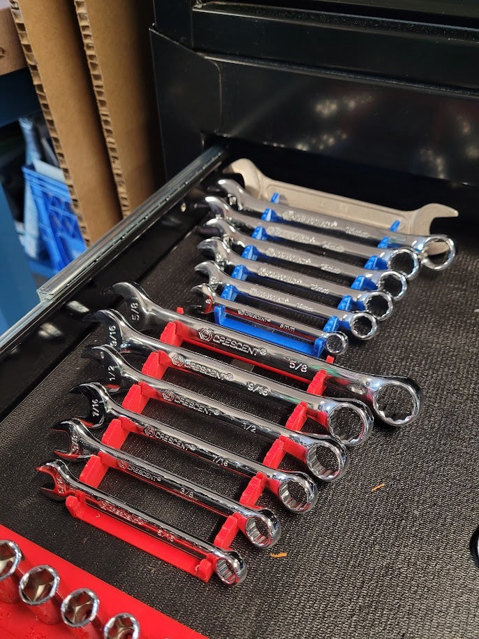 Håll dina kombinycklar organiserade och lättillgängliga med denna effektiva nyckelhållare. Den är utformad för att prydligt förvara dina nycklar och hjälper till att skapa ordning i din verktygslåda eller verkstad.
