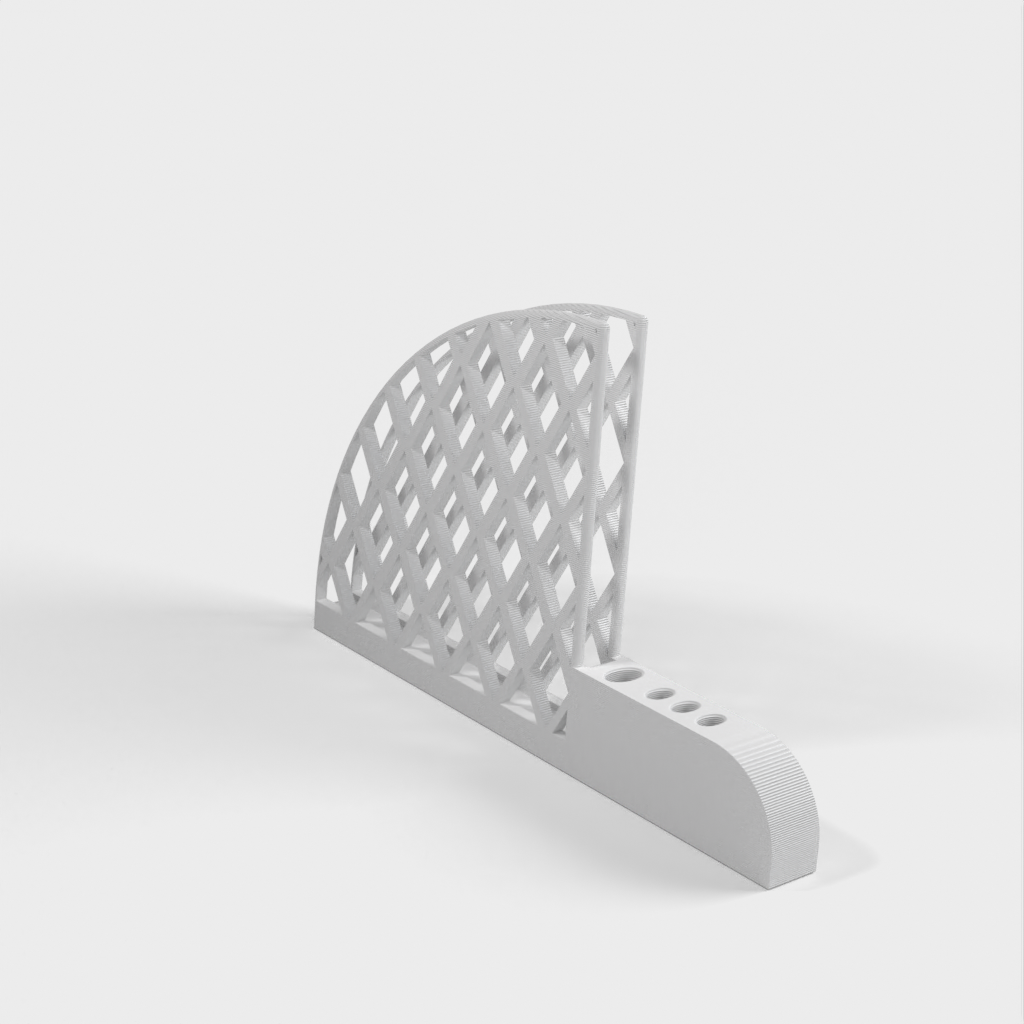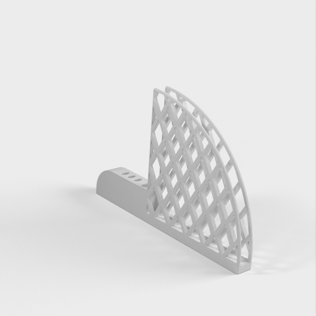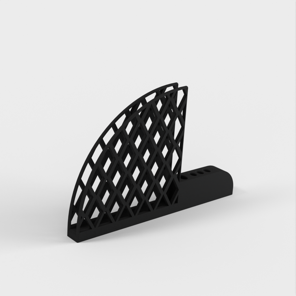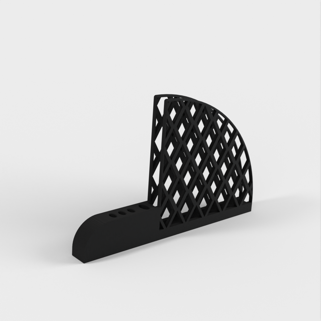 Kaffefilter och skedhållare designad för Hario V60-filter. Den har ett stort skedhål för att passa ett 5 mm x 10 mm elliptiskt handtag och tre små hål för att passa en 3 mm x 6 mm sked. Varje hål har en 1 mm förskjutning för att passa med utrymme. Produkten väger 67g och tar cirka 13 timmar att skriva ut.