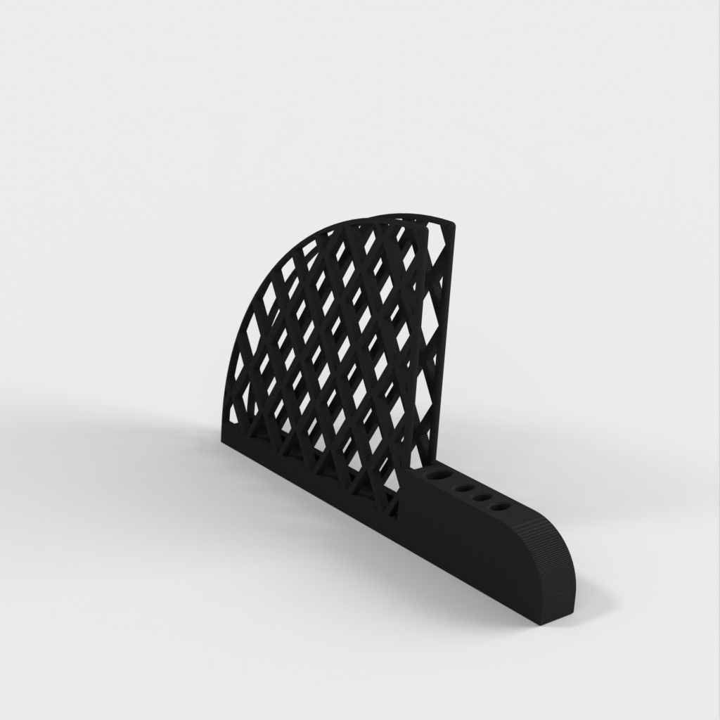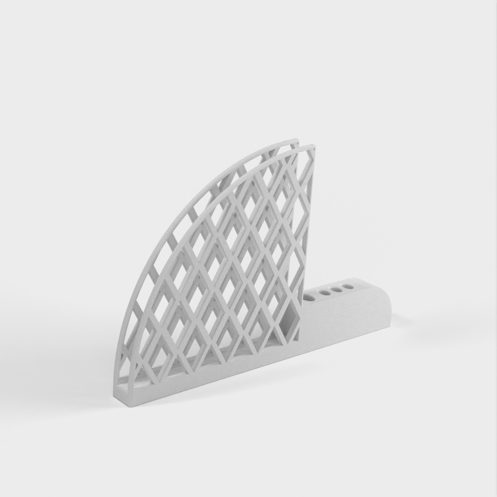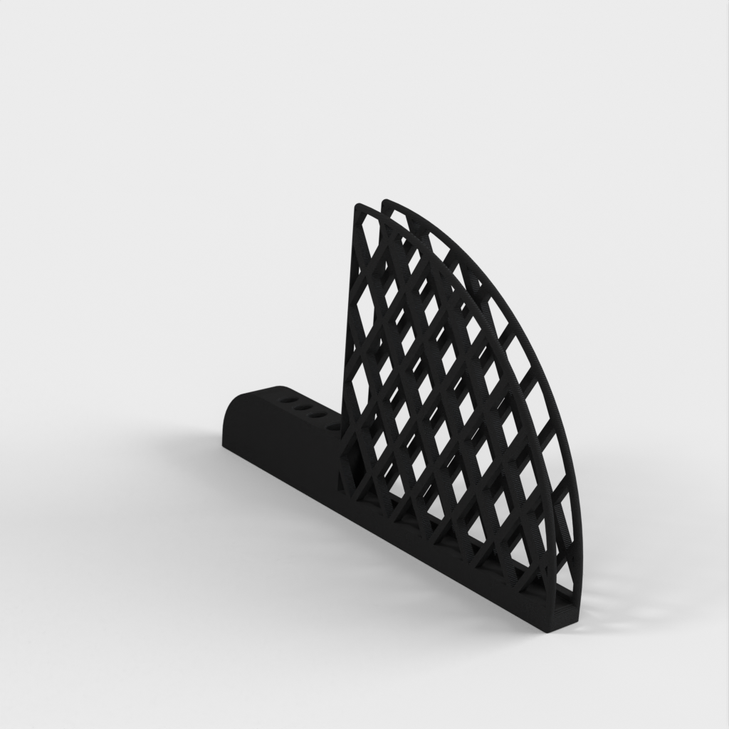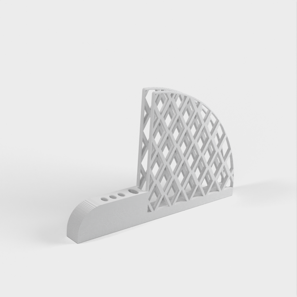 Kaffefilter och skedhållare designad för Hario V60-filter. Den har ett stort skedhål för att passa ett 5 mm x 10 mm elliptiskt handtag och tre små hål för att passa en 3 mm x 6 mm sked. Varje hål har en 1 mm förskjutning för att passa med utrymme. Produkten väger 67g och tar cirka 13 timmar att skriva ut.