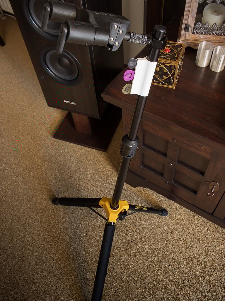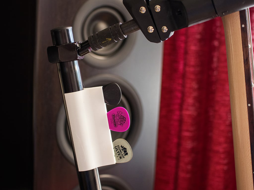 - Plats för cirka 3 medelstora eller tunga plektrum