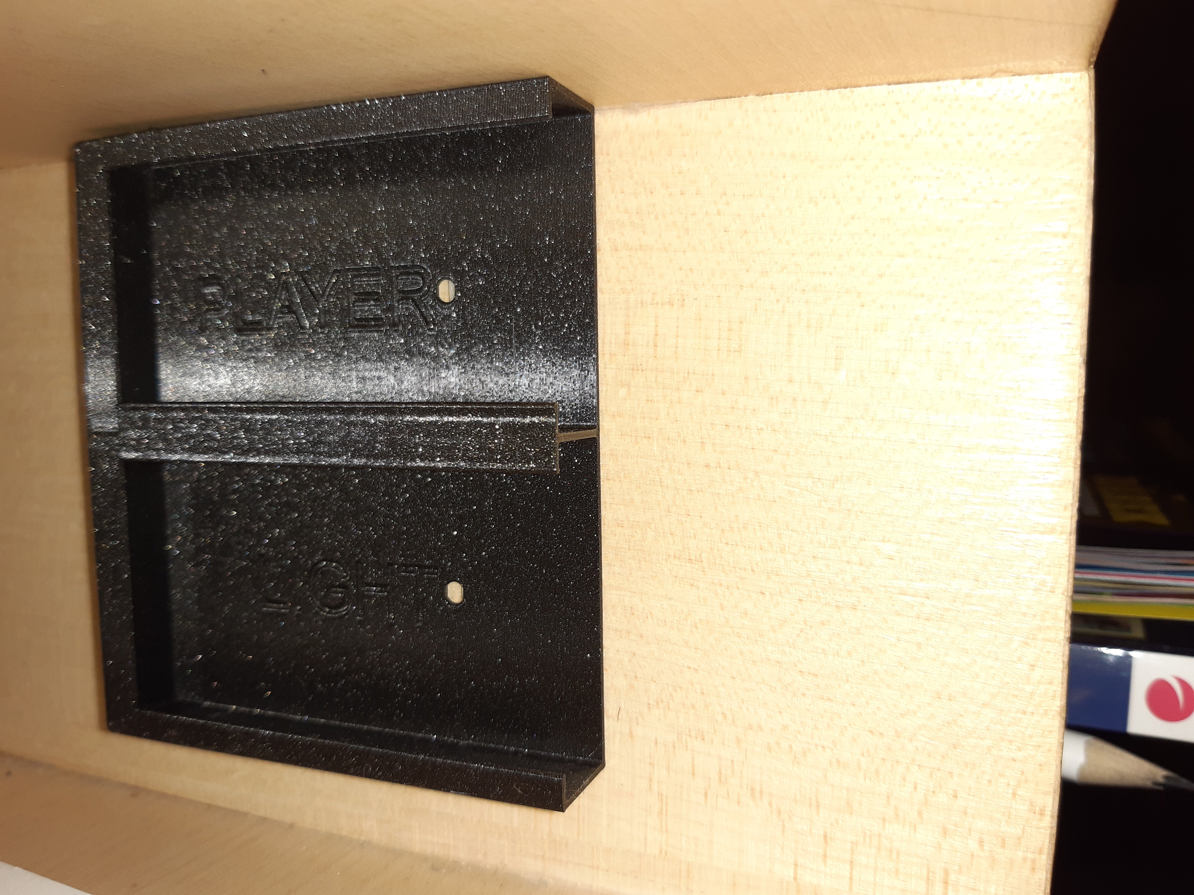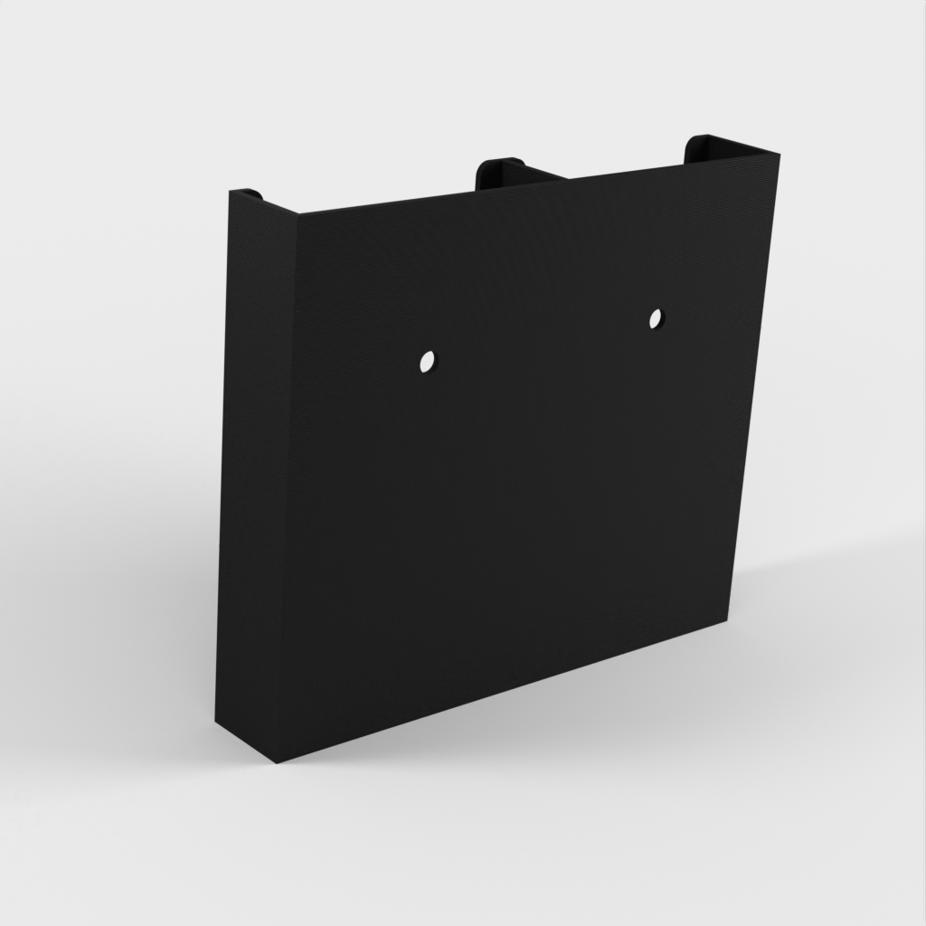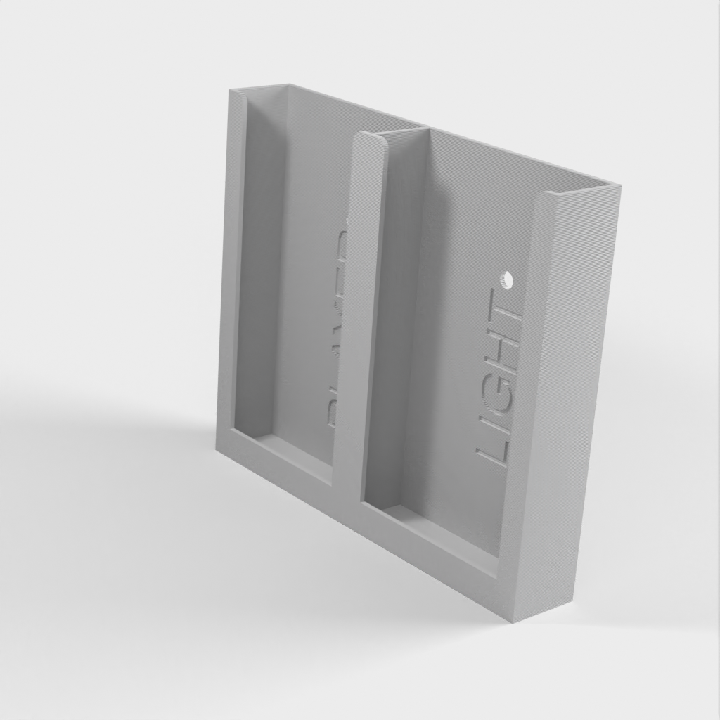 Detta är en enkel hållare som rymmer 2 fjärrkontroller. Den kan installeras antingen vertikalt eller horisontellt. Du kan fästa den antingen med två skruvar eller med dubbelhäftande tejp, vilket som passar ditt hem bäst.