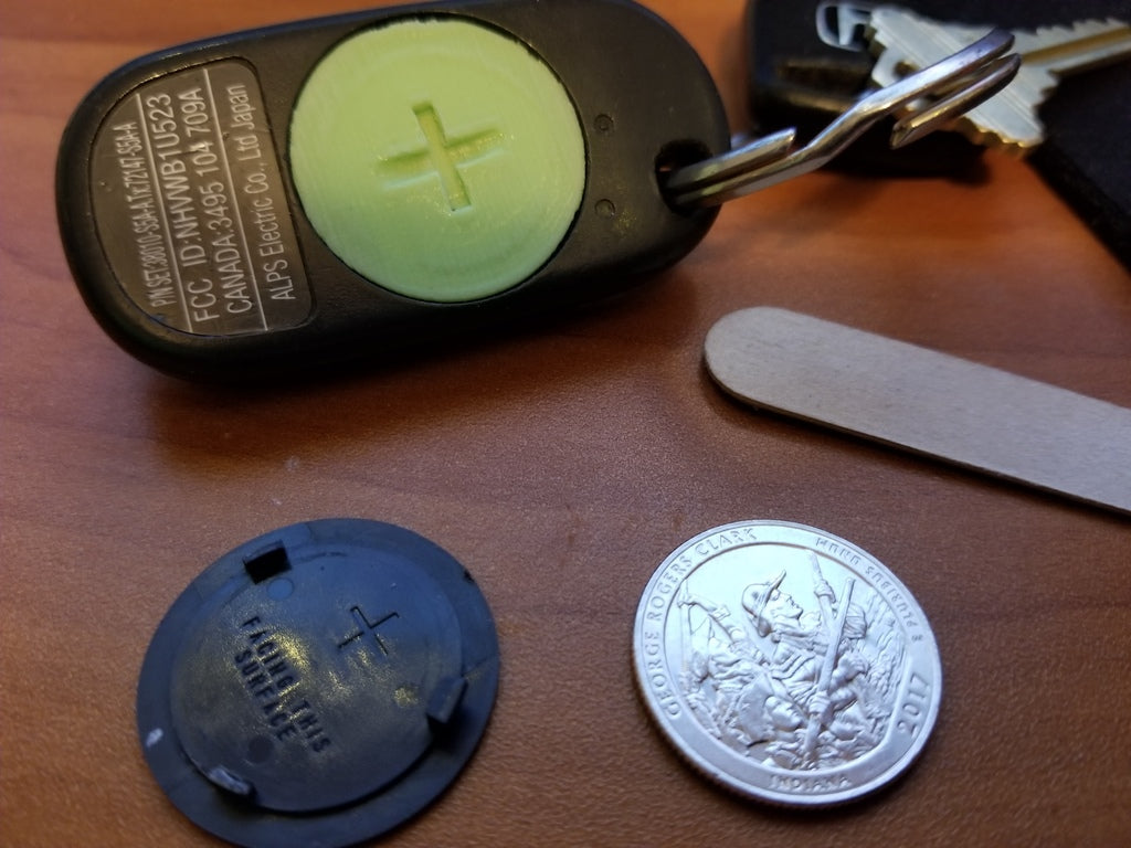 Utbytbart batterilock för en Honda fjärrkontroll dörrlåsnyckel. Produkten innehåller två olika versioner för olika batteristorlekar.