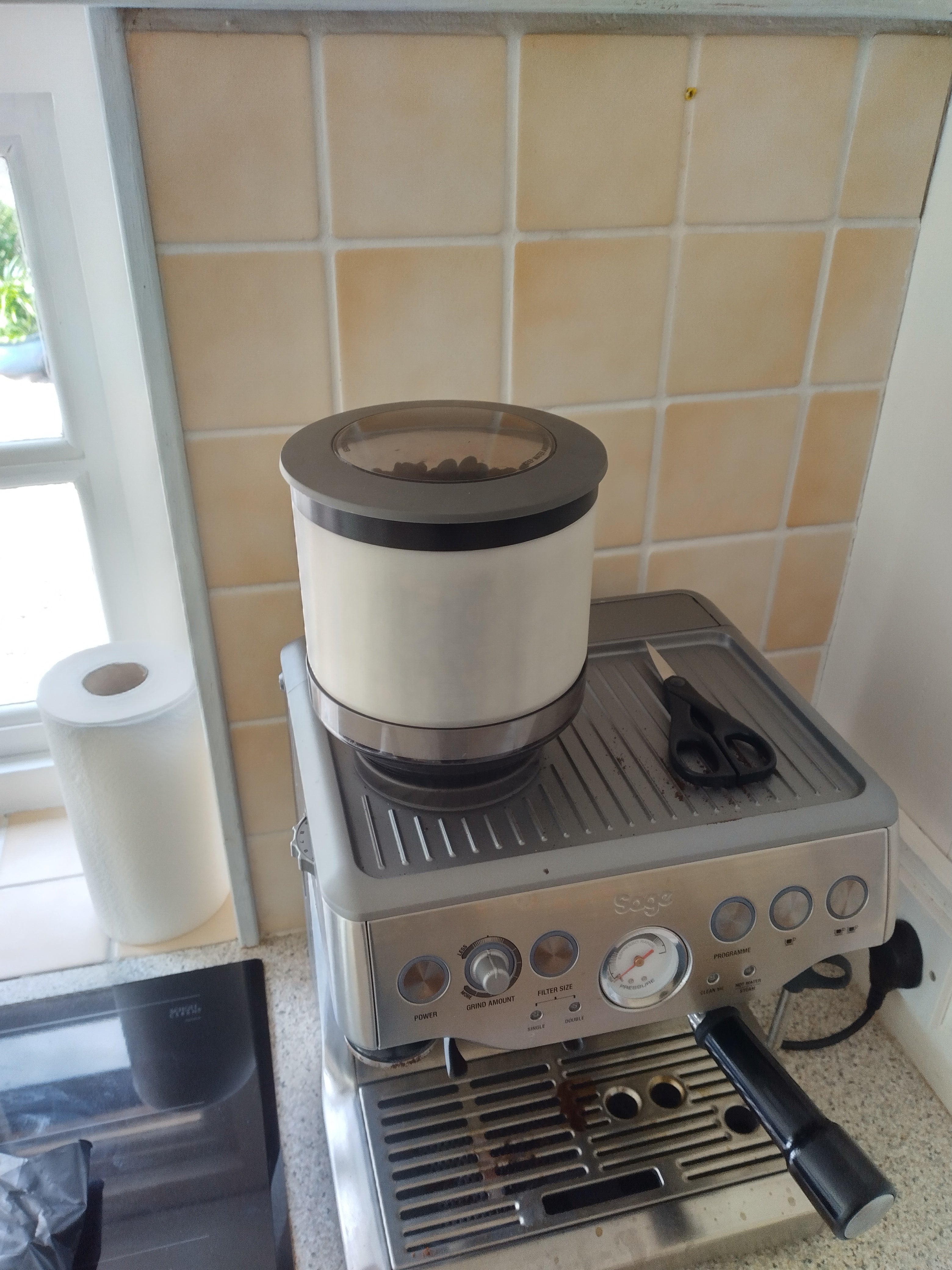 Denna förlängare är speciellt utformad för Sage Breville Barista Express-kaffemaskinen och erbjuder en praktisk lösning för kaffeentusiaster. Den möjliggör en avsevärd ökning av kapaciteten hos kaffebönbehållaren i maskinen, vilket minimerar behovet av frekventa påfyllningar under din dagliga kaffebryggning. Detta gör din upplevelse mer oavbruten och bekväm, särskilt när du brygger flera koppar i följd.