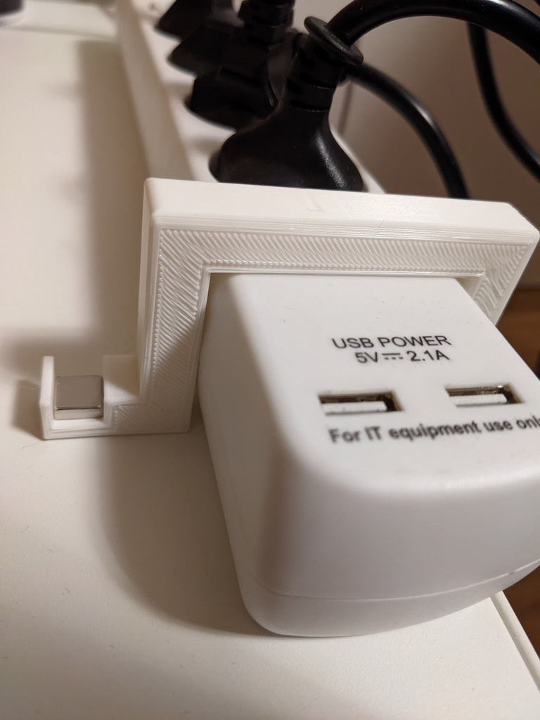 Ett praktiskt uttag för Ikea Bror-hylla. Fästet använder en 10 mm x 10 mm magnet för att placera ett grenuttag säkert på hyllan. Flera STL-filer är tillgängliga beroende på grenutloppets bredd och höjd som anges i filnamnet.