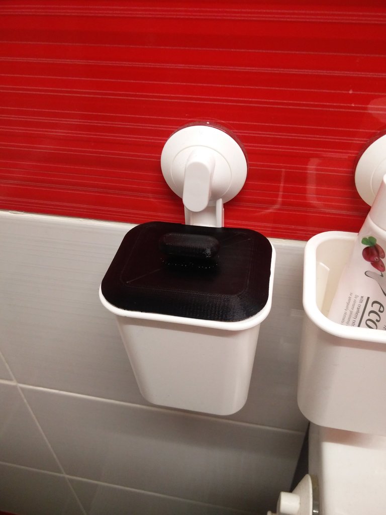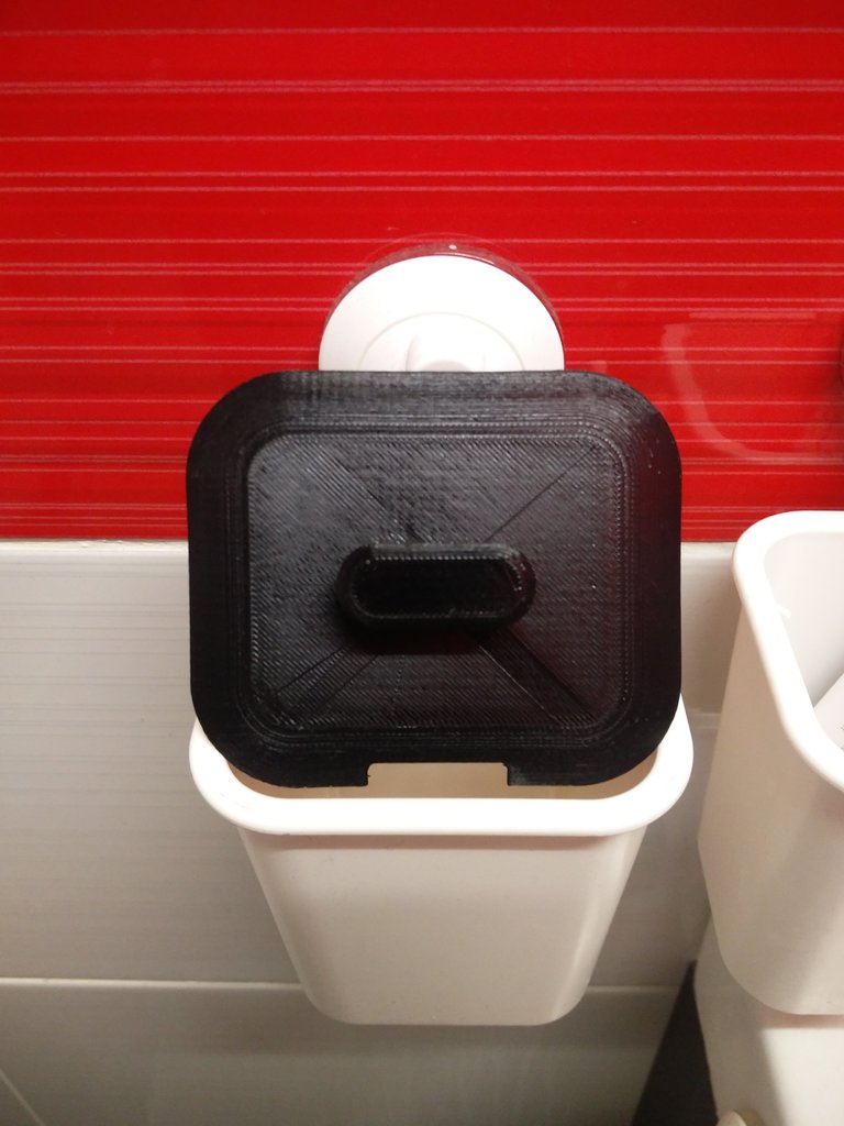 Ett enkelt lock till en tandborstkärl från IKEAs Stugvik-serie, designat för att skapa en liten papperskorg. Locket är försett med ett handtag som faller i linje med resten av Stugviks sortiment. Allt du behöver göra är att lägga till en liten plastpåse inuti behållaren så har du en kompakt soptunna, perfekt för badrummet.