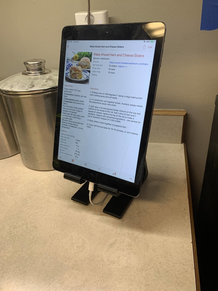 Detta eleganta iPad-ställ erbjuder en praktisk lösning för att placera din Apple iPad. Det är specifikt utformat för att passa iPad Air (2:a generationen) och är även helt kompatibelt med flera iPad Pro-modeller, vilket gör det till ett mångsidigt tillbehör för din surfplatta. Stativet låter dig placera din enhet i en stabil position, perfekt för en mängd olika aktiviteter, som att titta på videor, läsa e-böcker, följa recept i köket eller delta i videosamtal. Med detta iPad-ställ kan du frigöra dina händer och njuta av en mer bekväm och ergonomisk användning av din iPad i vardagen.