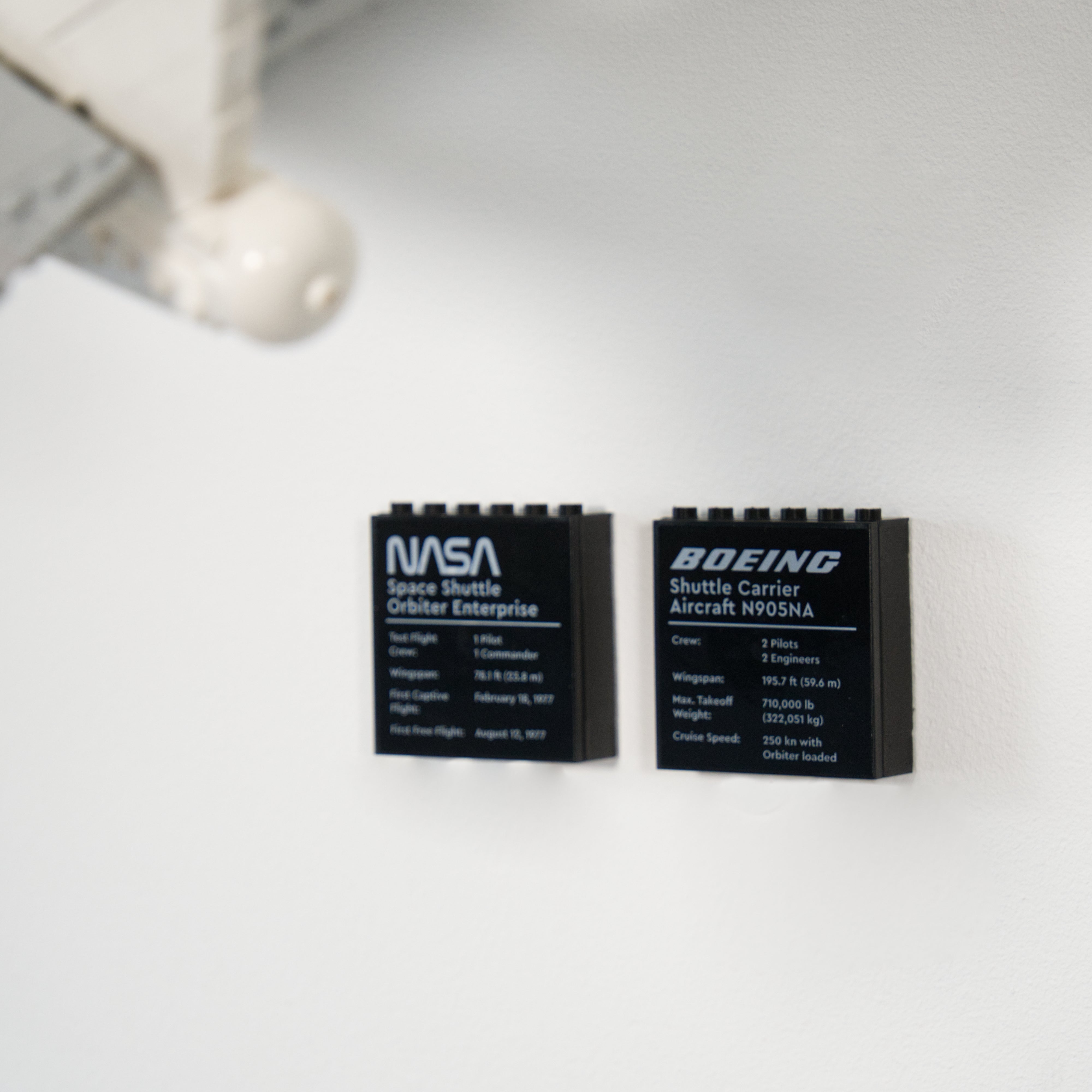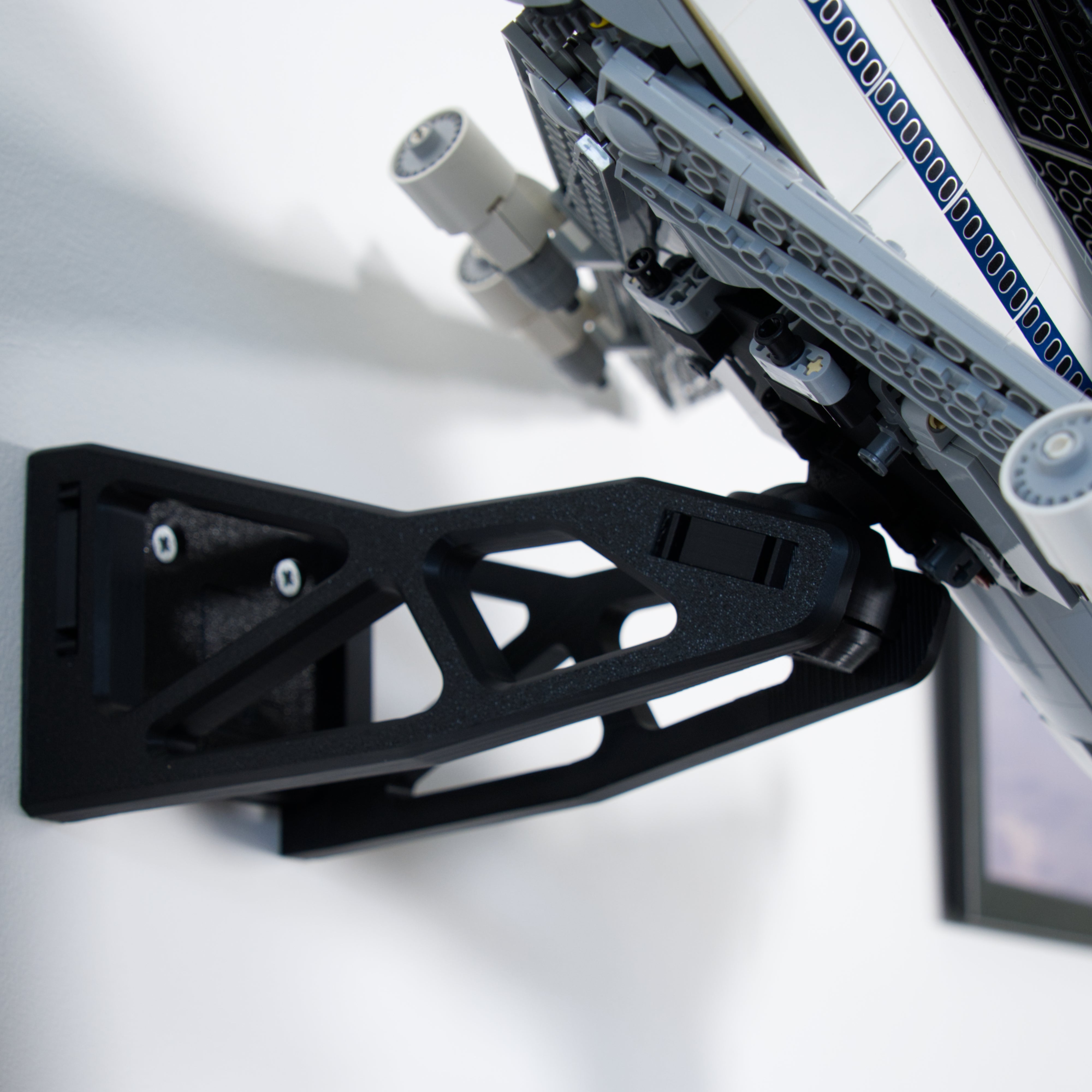 Fremvis din NASA Shuttle Carrier model med dette dynamiske vægbeslag. Det indbyggede kugleled gør det muligt at justere vinklen præcist for det bedste udtryk. Designet sikrer nem afmontering via en adapter, og der medfølger separate holdere til opsætning af de tilhørende informationskort.