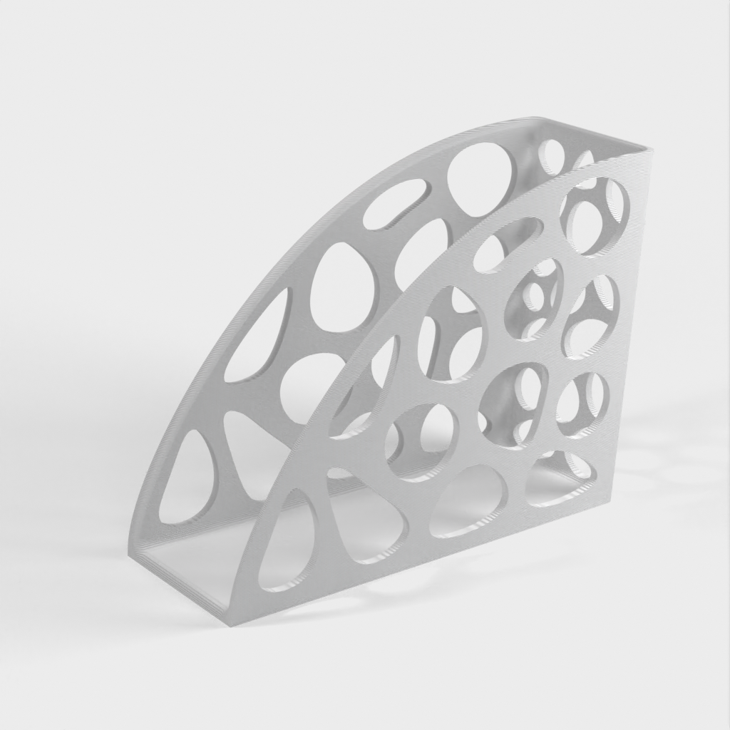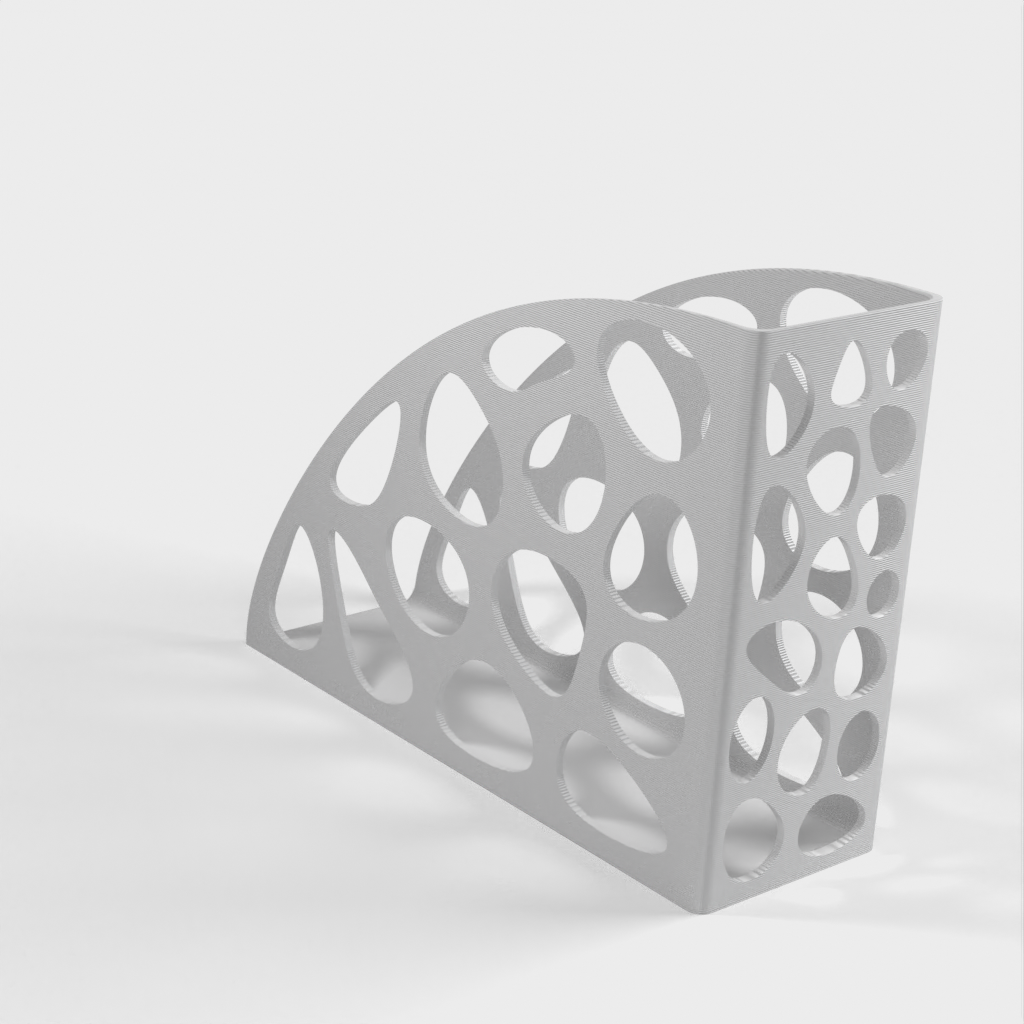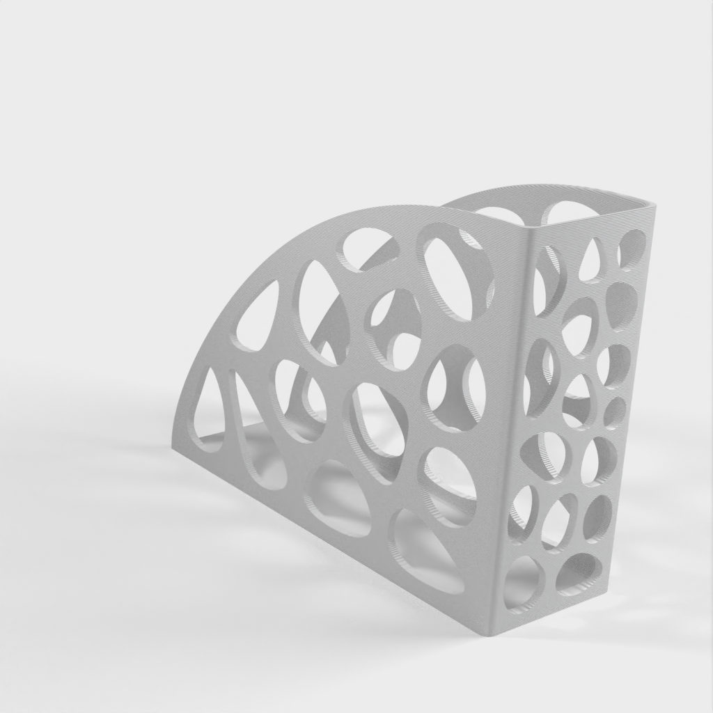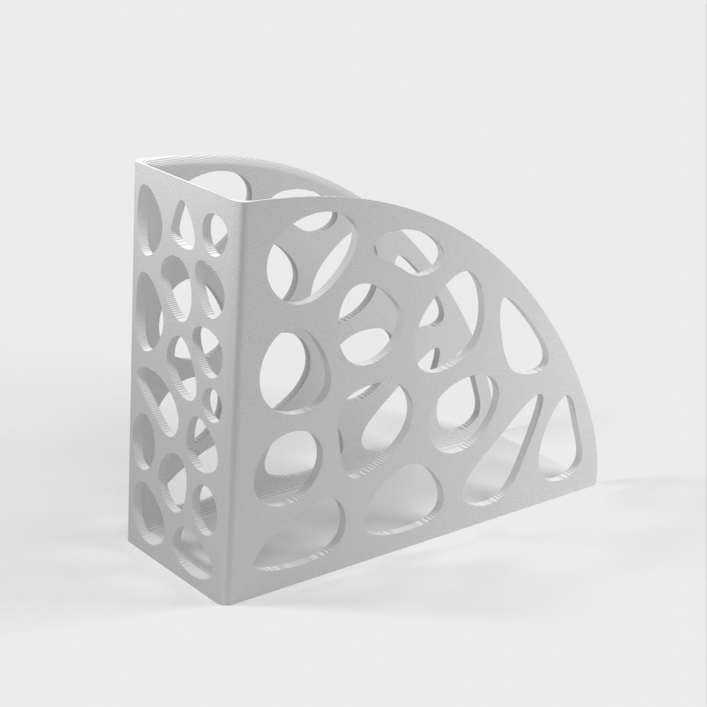 Detta är en enkel kaffefilterhållare gjord med Voronoï-diagram. Dess design gör det enkelt att hålla och organisera dina kaffefilter i ditt kök. Produkten är robust men lätt, vilket gör den lätt att flytta runt efter behov.