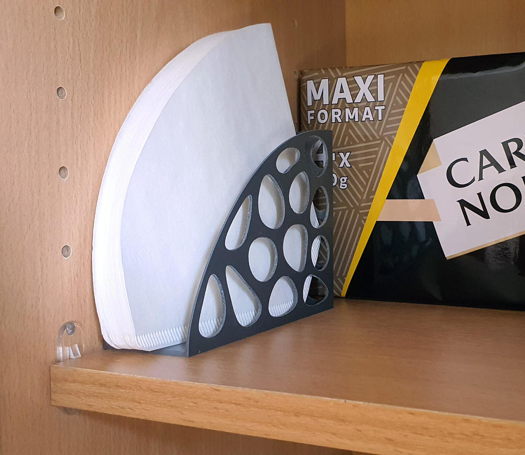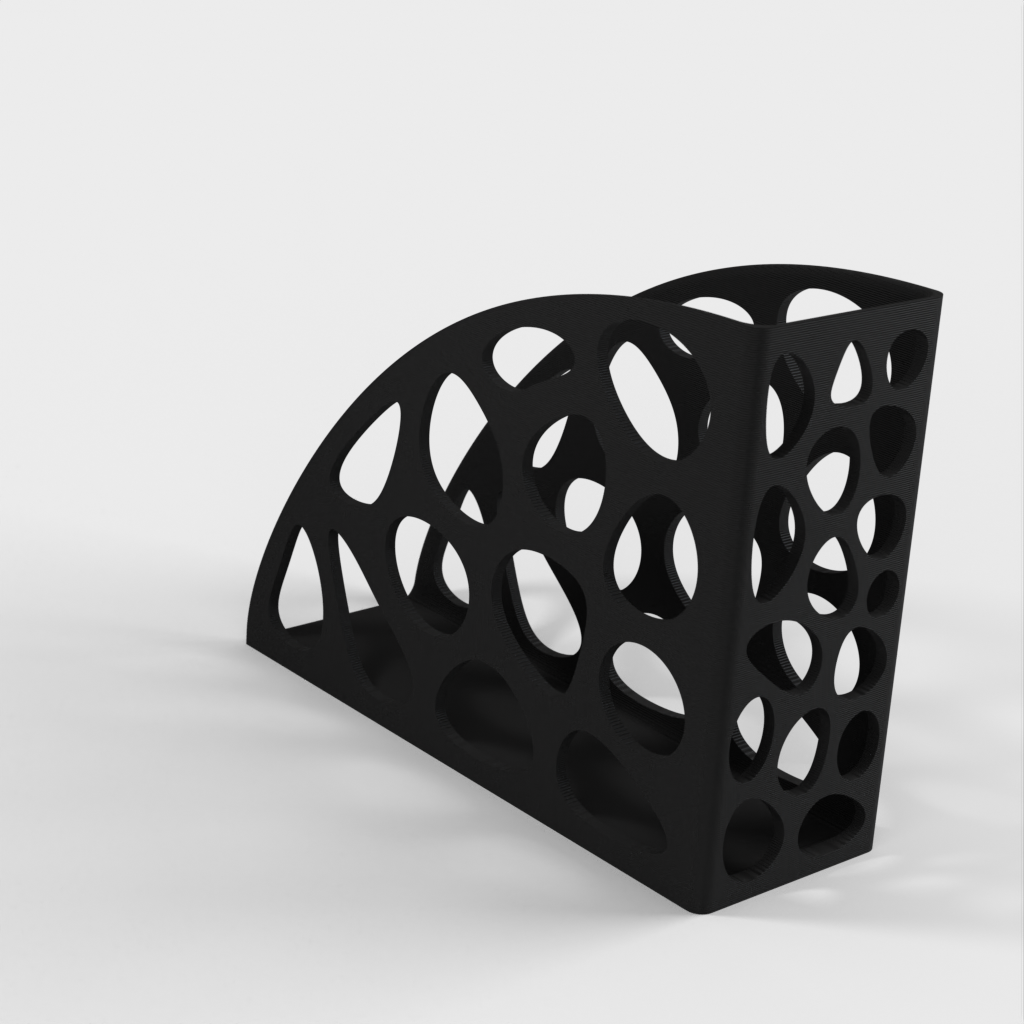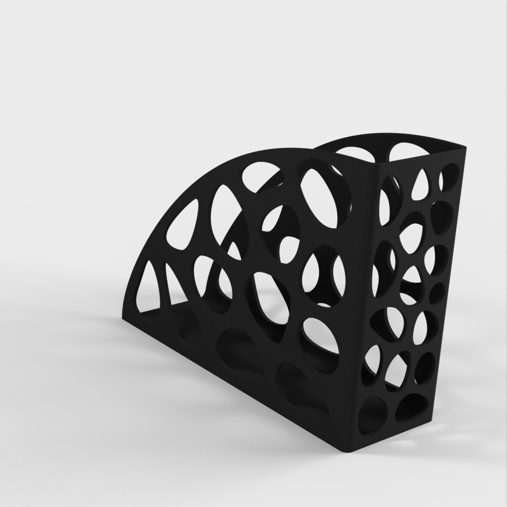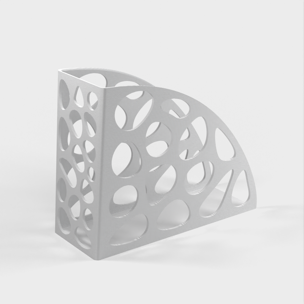 Detta är en enkel kaffefilterhållare gjord med Voronoï-diagram. Dess design gör det enkelt att hålla och organisera dina kaffefilter i ditt kök. Produkten är robust men lätt, vilket gör den lätt att flytta runt efter behov.