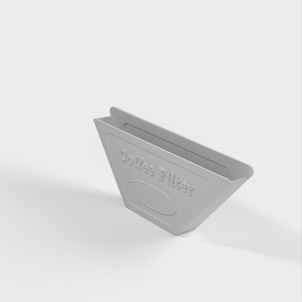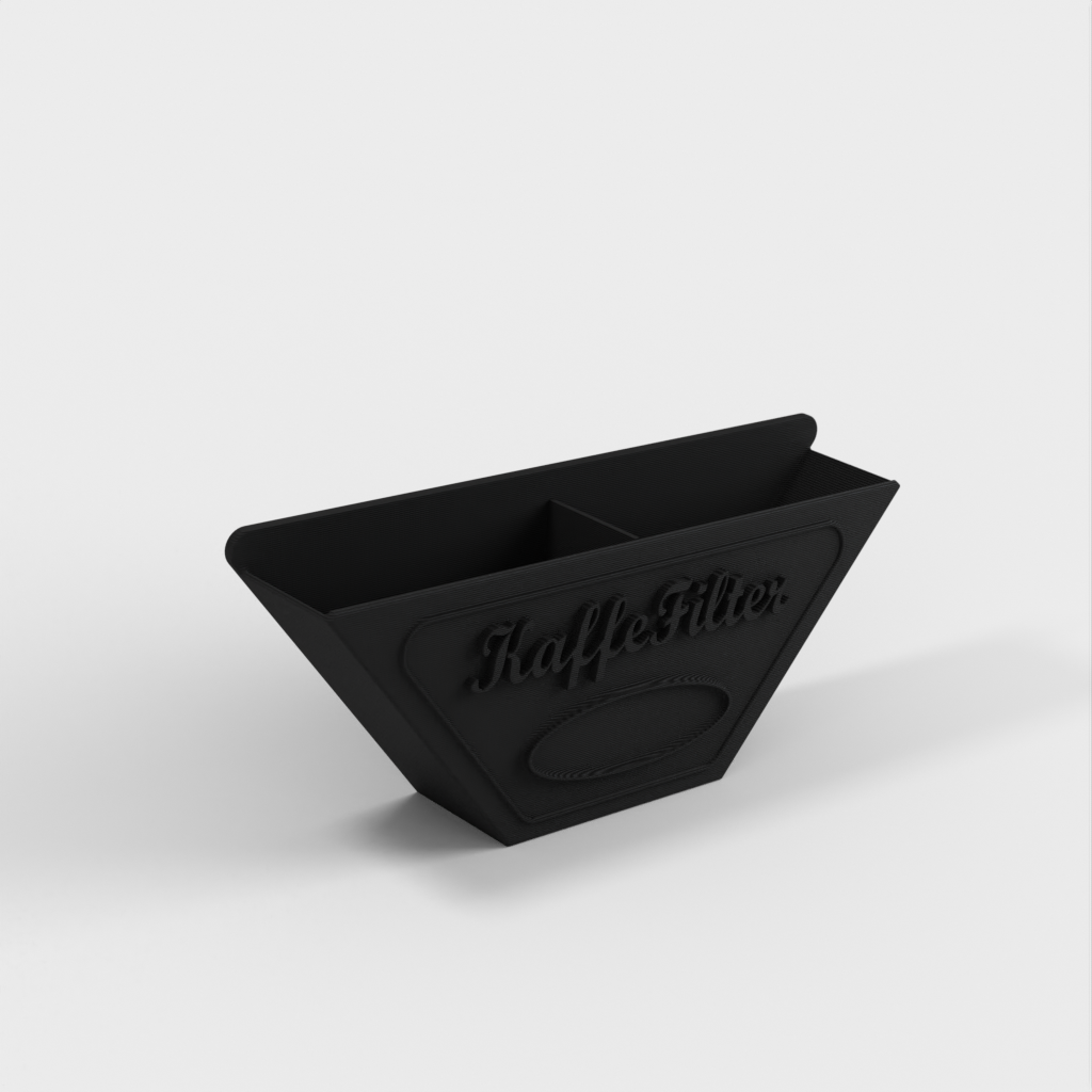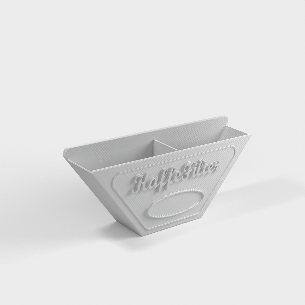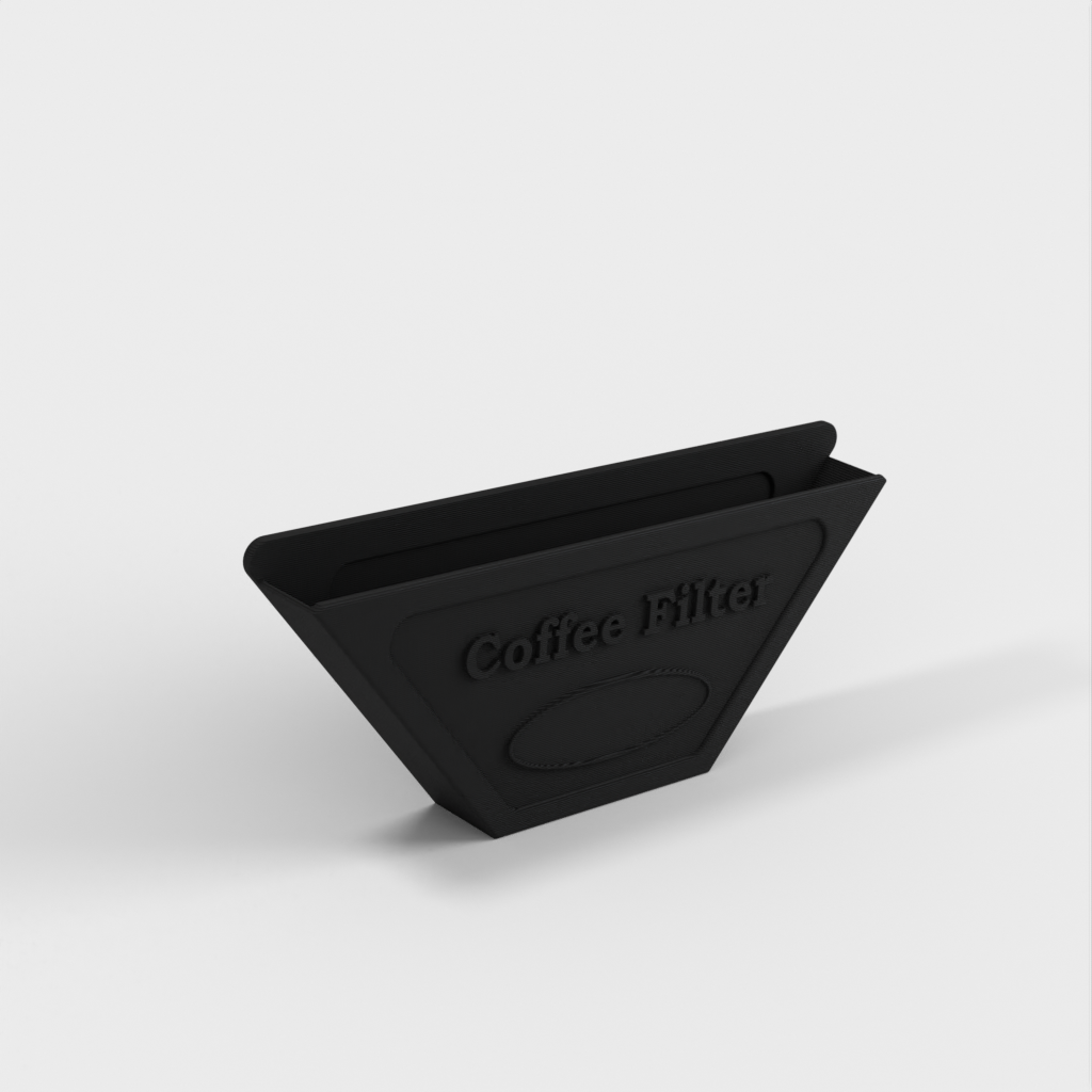 Perfekt kaffefilterhållare för husbilar och resesläp. Denna filterhållare passar ca. 20 pappersfilter och kan skrivas ut i en delad, upprätt version. En större version finns också tillgänglig för att rymma fler filter.