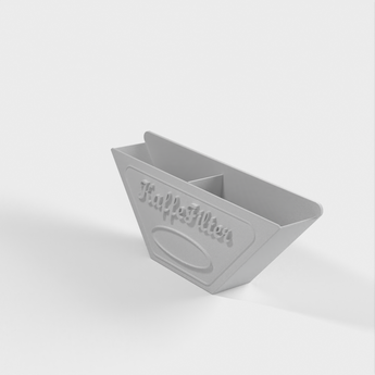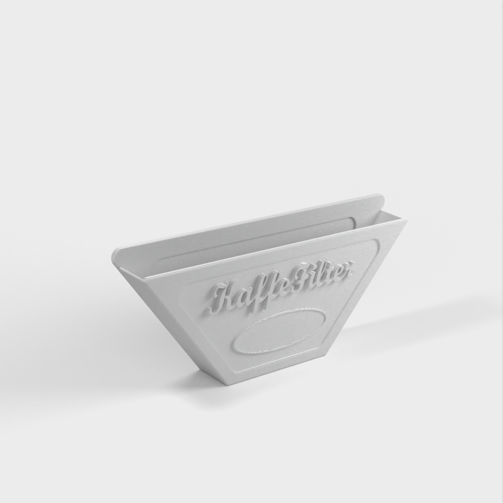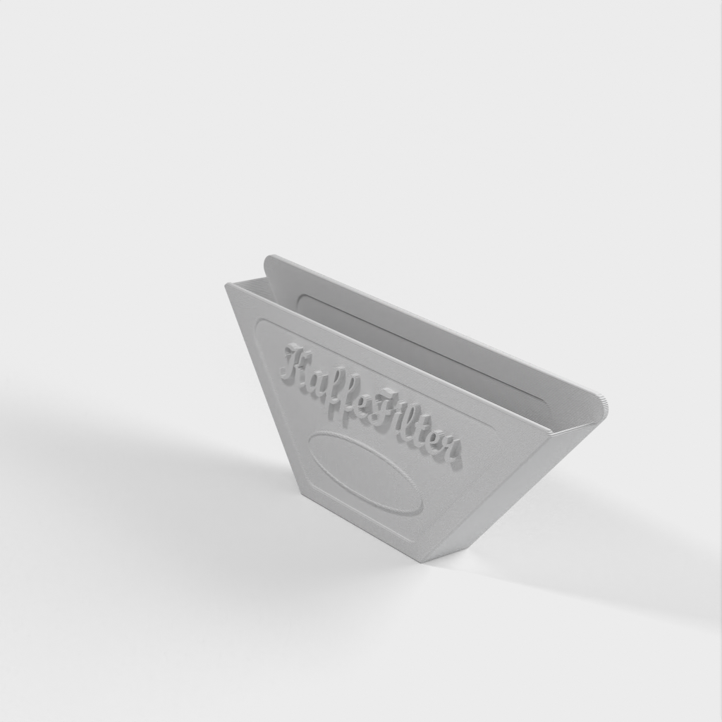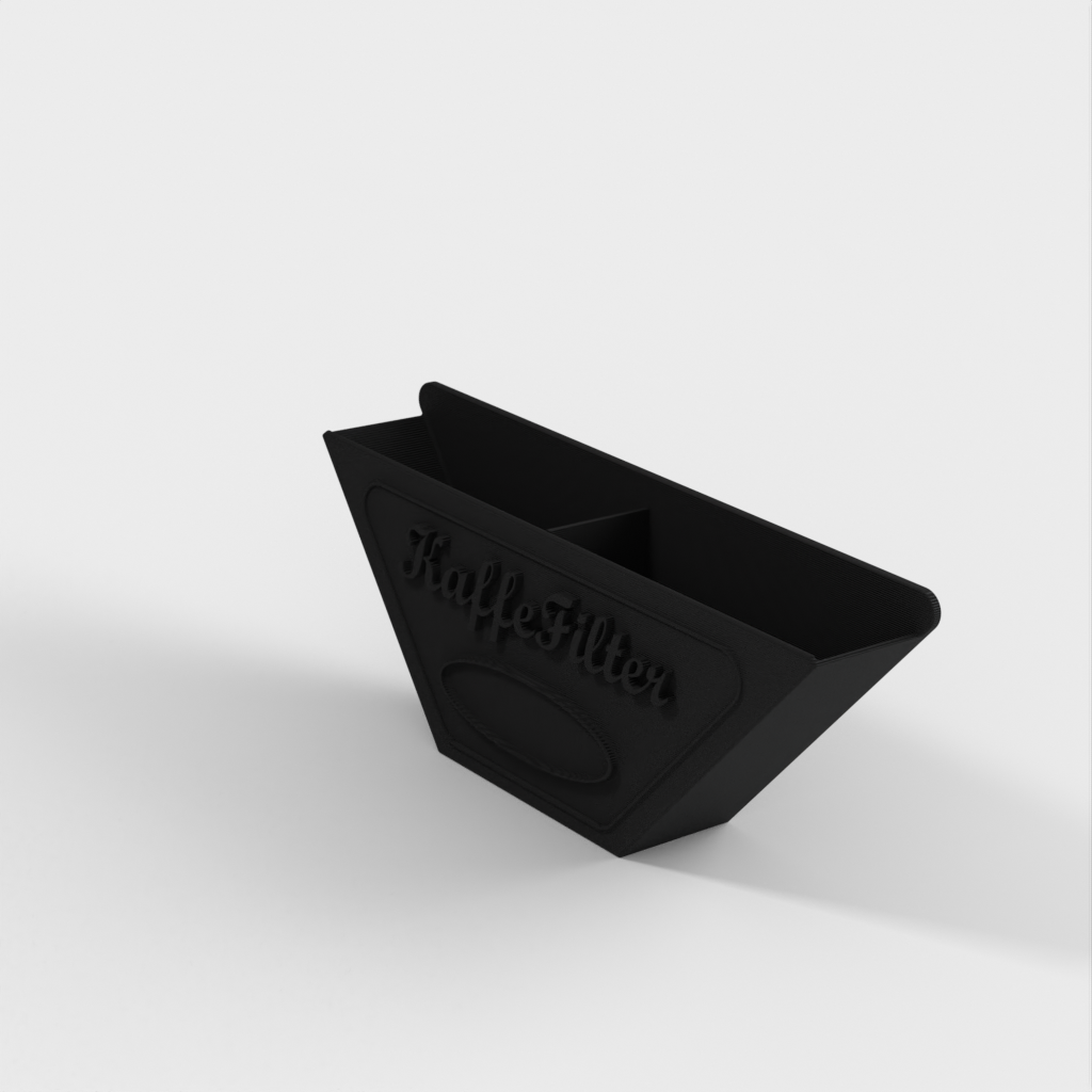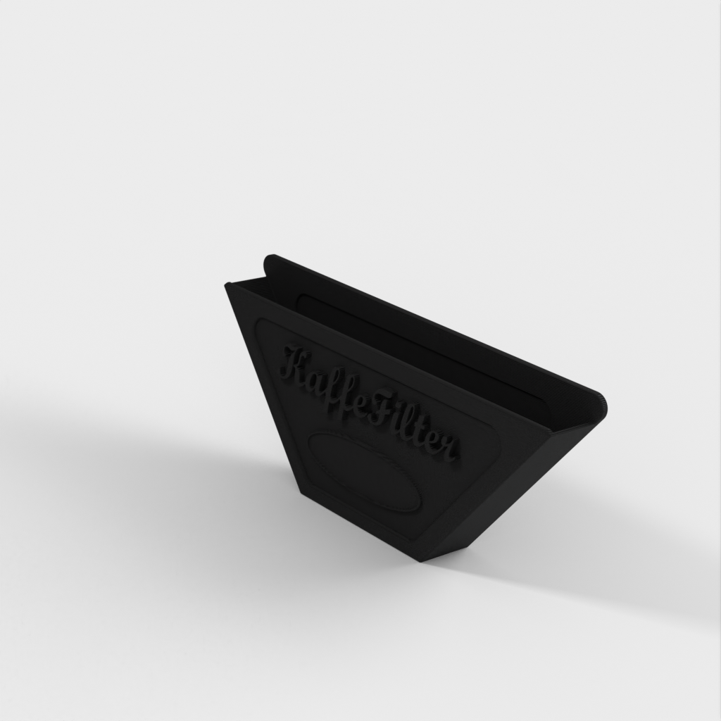 Perfekt kaffefilterhållare för husbilar och resesläp. Denna filterhållare passar ca. 20 pappersfilter och kan skrivas ut i en delad, upprätt version. En större version finns också tillgänglig för att rymma fler filter.