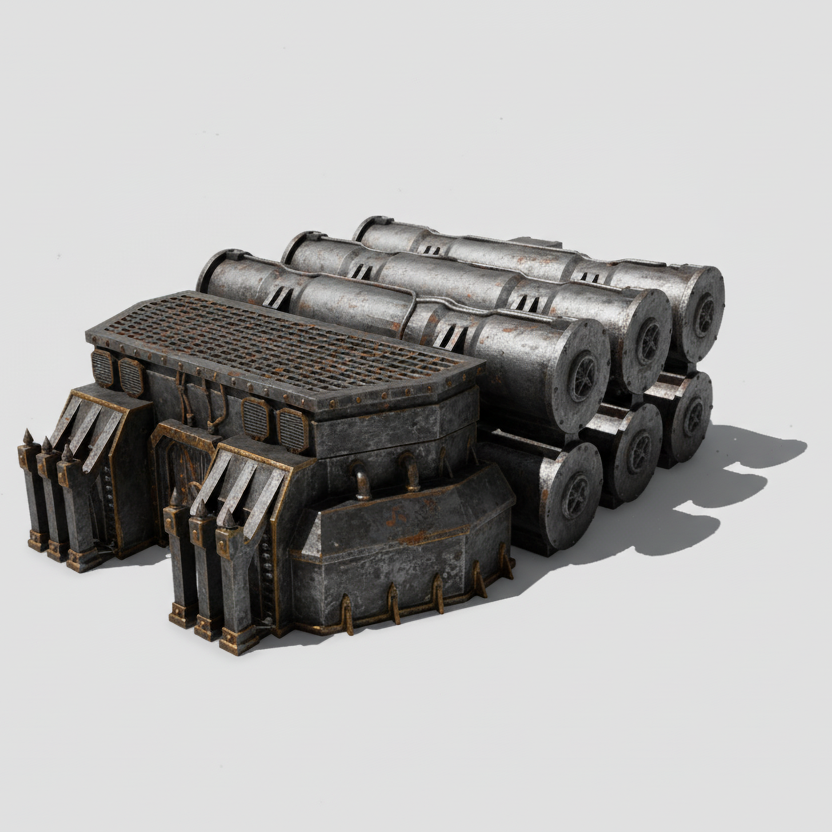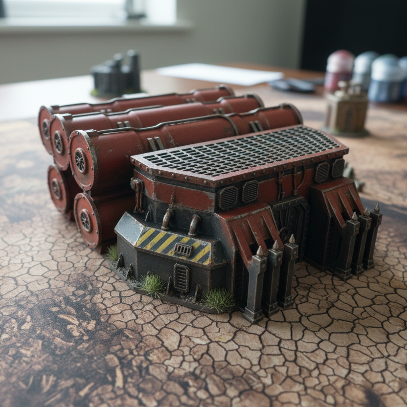 Dette terræn skaber et slidt, kemisk påvirket område, ideelt som ruiner eller spredt terræn i dine wargaming-scenarier. Perfekt tilføjelse til Warhammer 40k slag, hvor det kan fungere som strategisk position eller bygning, der beriger spillets atmosfære.