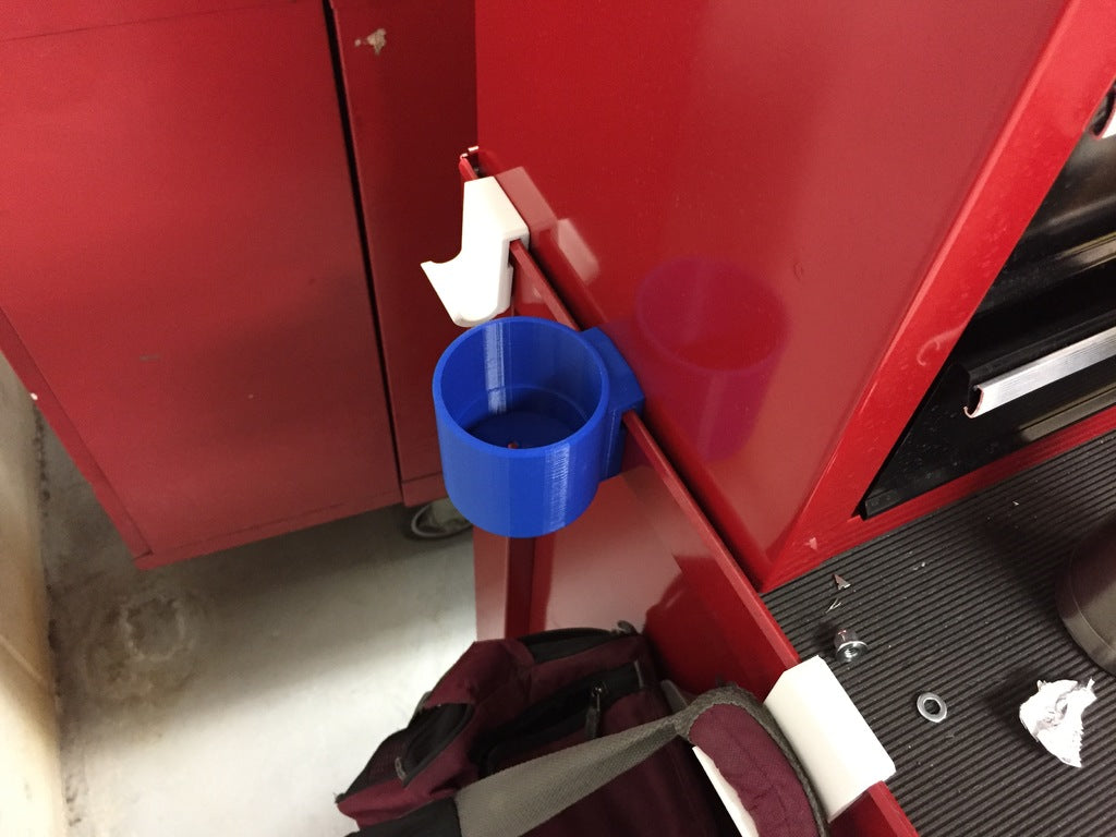 Denna mugghållare är utformad för att ge en bekväm lösning för att förvara din dryck på arbetsplatsen. Den fästs enkelt på din verktygslåda, till exempel en Craftsman-verktygslåda, och håller din kopp säkert inom räckhåll. Genom att hålla drycker borta från arbetsytan minimerar du risken för spill och kan upprätthålla en organiserad och effektiv arbetsyta. Denna funktionella mugghållare är ett enkelt men effektivt tillbehör för hantverkare och gör-det-själv-entusiaster som vill hålla sig hydrerade utan att avbryta sitt arbete.