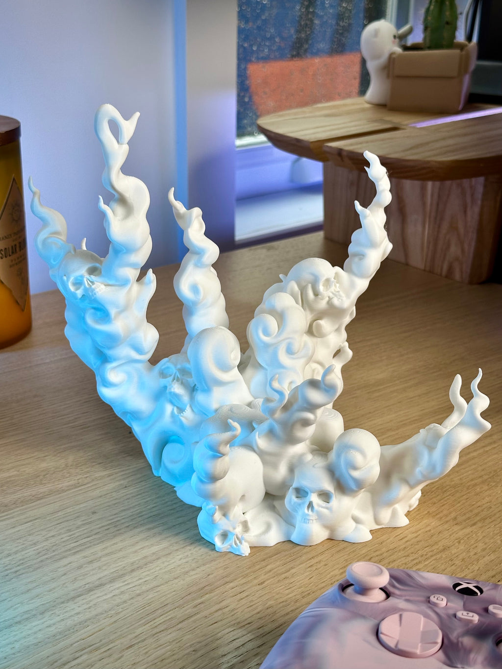 • Unik holder formet som et kranie med et røgfyldt, uhyggeligt design.