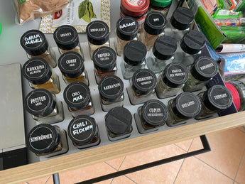 Organisera dina kryddor med denna praktiska kryddburkförpackning designad för lådor. Det ger ett effektivt sätt att hålla dina kryddor på plats och lättillgängliga. Denna variant är idealisk för rektangulära kryddburkar, men den kan även anpassas till runda kryddburkar, vilket gör den flexibel för olika förvaringsbehov.