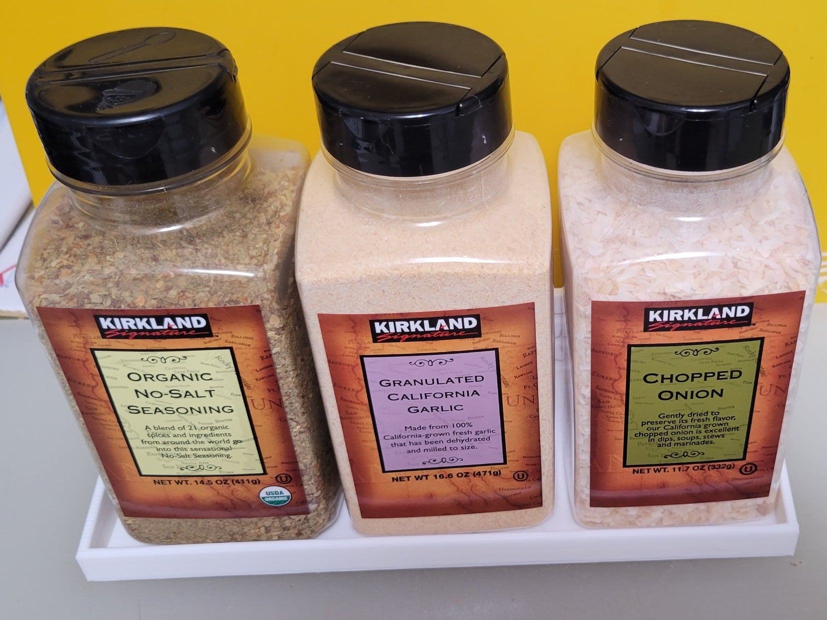Detta praktiska kryddställ är utformat för att ge en tydlig och organiserad förvaring av dina Kirkland-kryddor . Med detta kryddställ kan du enkelt hålla dina kryddburkar samlade och inom räckhåll, vilket gör matlagningen mer effektiv. Det hjälper till att skapa ett snyggt kök och säkerställer att du snabbt kan hitta de kryddor du vill ha. Dess enkla design gör att det passar i de flesta kök.