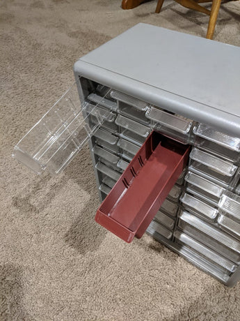 Denna kompakta låda är utformad för att effektivt organisera dina smådelar, vilket gör den till ett oumbärligt tillskott till alla arbetsytor. Oavsett om du behöver förvara skruvar, muttrar, elektroniska komponenter eller andra små föremål, erbjuder denna låda en praktisk lösning för att hålla saker organiserade. Med sin smarta design kan du enkelt integrera den i befintliga förvaringssystem, så att du alltid har dina viktigaste delar nära till hands. Den hjälper till att minimera röran och säkerställer att din arbetsyta förblir prydlig och funktionell.