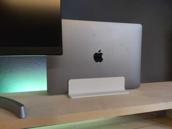 Detta snygga MacBook-ställ är utformat för att förbättra din arbetsstation. Det höjer din bärbara dator till en mer ergonomisk höjd, vilket kan bidra till att förbättra hållningen och minska belastningen på nacke och axlar under användning. Stativet är precisionstillverkat för att säkerställa en stabil och säker placering av din enhet.
