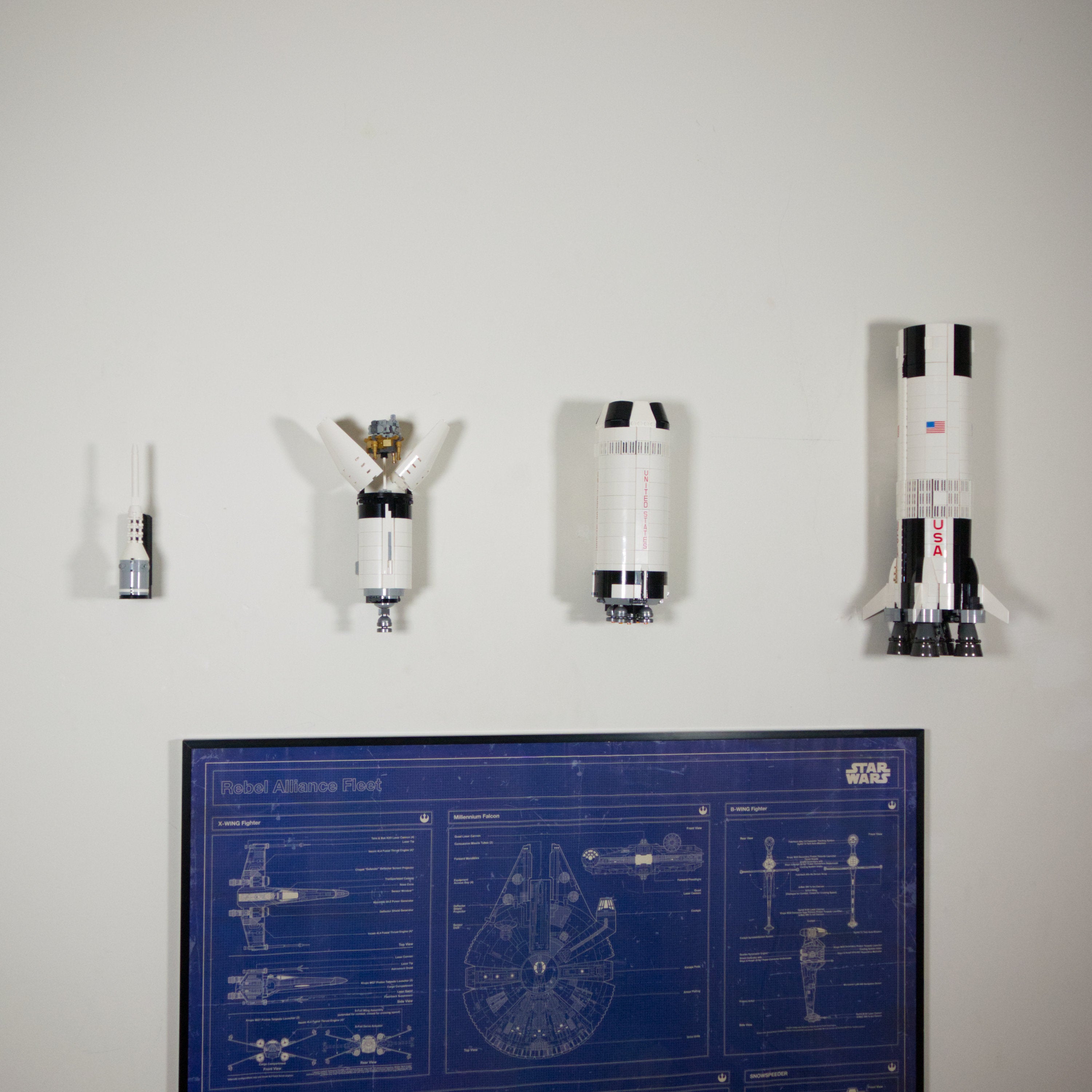 Minimalistisk väggupphängning för Saturn V-raket