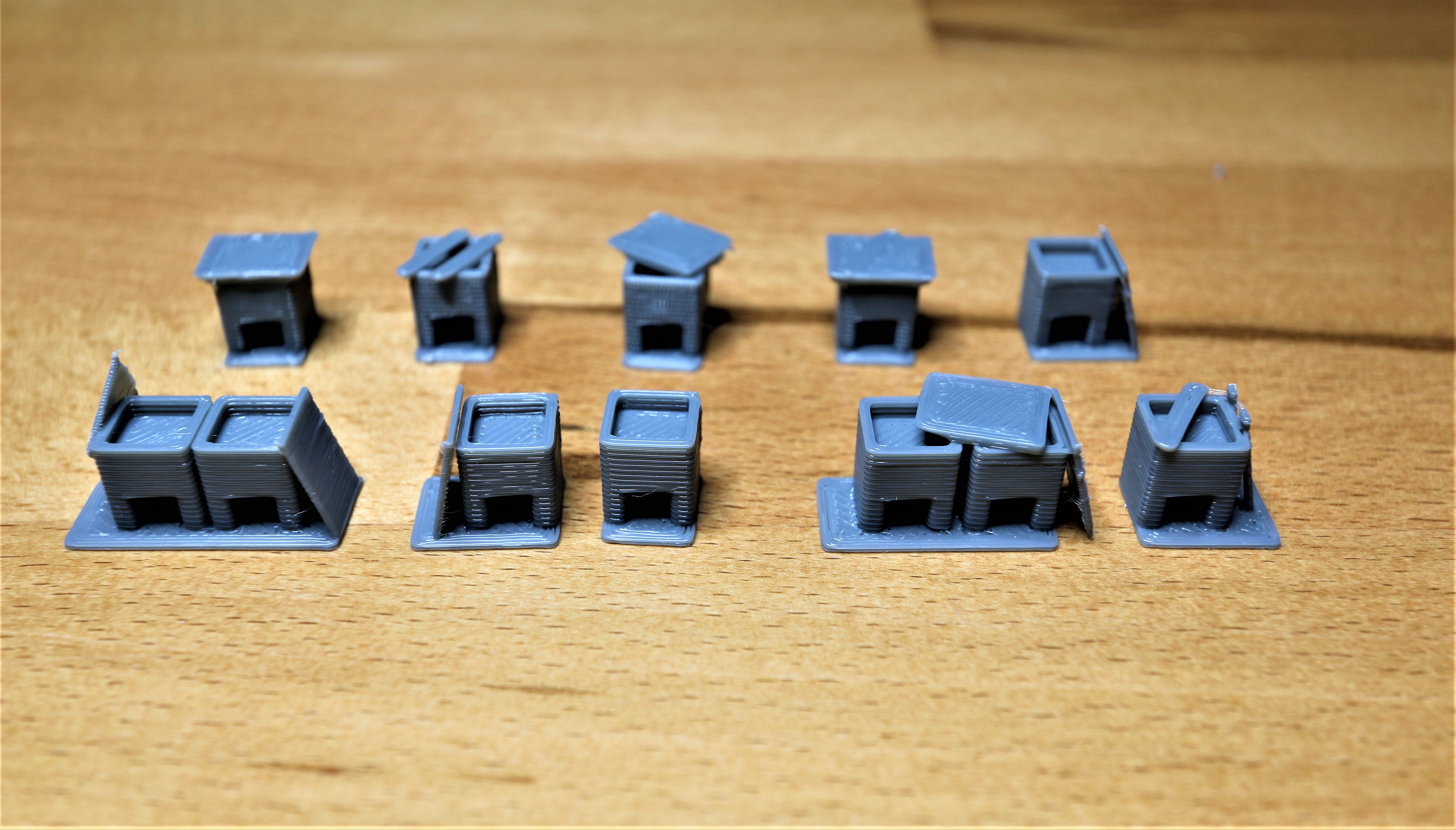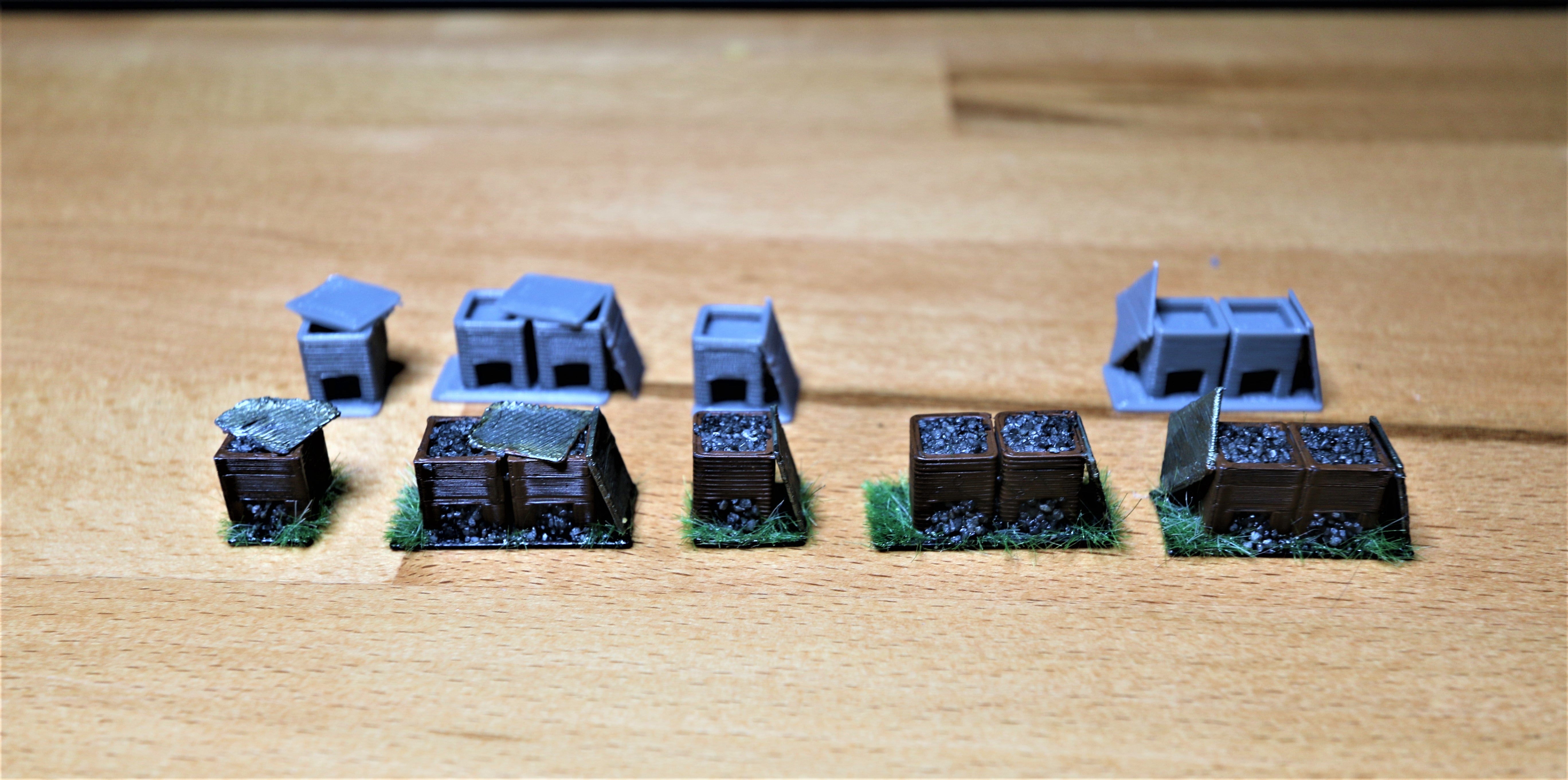 Setet innehåller ett urval av 10 olika designer , vilket ger dig stor flexibilitet i att forma ditt modelluniversum. Från slutna behållare till lådor med öppna lock eller staplade träbjälkar – varje variant bidrar till att berätta en unik historia i din modelllayout. Du kan ytterligare förbättra lådornas utseende genom att måla dem och lägga till realistiskt löst material, vilket gör dem till en integrerad del av ditt landskap.