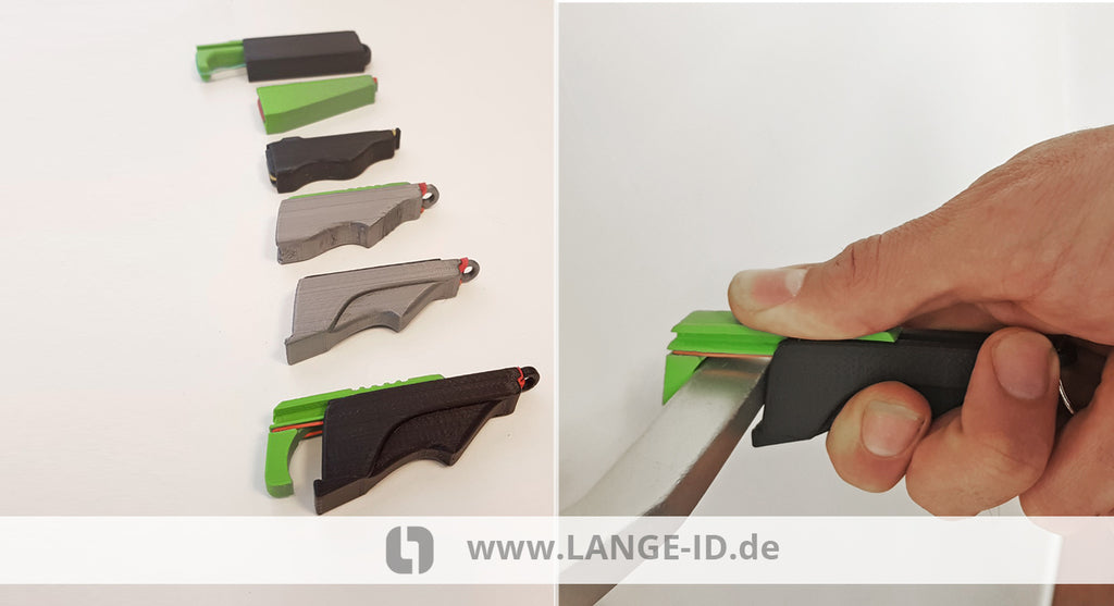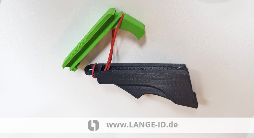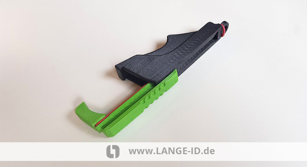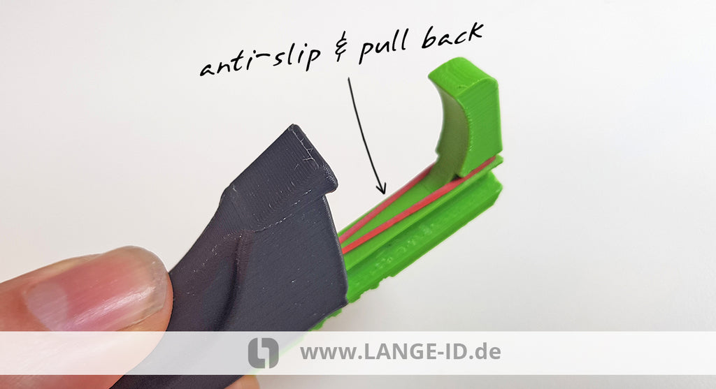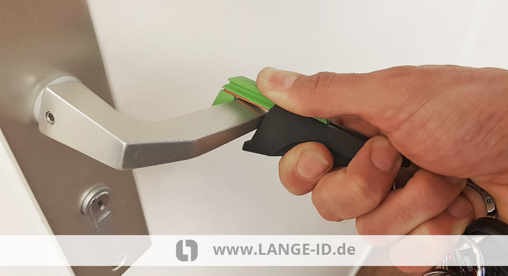Förutom att öppna dörrar kan krokens framsida även användas för att trycka på knappar i offentliga utrymmen. Gummiringen på kroken ser till att den glider på handtaget och förhindrar att den faller ner.