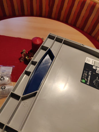 Handtagsinsatsen monteras genom att tryckas in i de befintliga öppningarna på euroboxen, vilket säkerställer en tät och stabil passform. För extra säkerhet kan insatsen limmas fast om så önskas. Oavsett om dina OBI euroboxar används för professionell förvaring i en verkstad, organisering av hobbyartiklar eller transport av föremål, ger denna handtagsinsats en betydande förbättring av användbarheten och gör din vardag enklare.