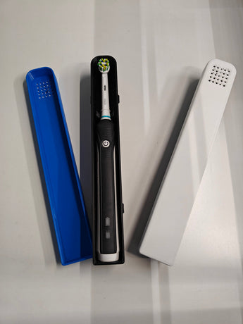 Upptäck detta praktiska resefodral, skapat för att skydda din Oral-B eltandborste när du reser eller för organiserad förvaring hemma. Fodralet är utformat för att hålla din tandborste säkert på plats med en enkel snäppfunktion som garanterar stabilitet och förhindrar att den rör sig. Locket snäpps säkert på plats och ger ett robust skydd mot yttre påverkan. När du behöver använda din tandborste är den enkel att ta bort med ett enkelt tryck. Den senaste versionen av fodralet har en förbättrad bas med en smalare och mer flexibel hållare, vilket ytterligare optimerar passformen och motståndskraften mot daglig användning och eventuella stötar.