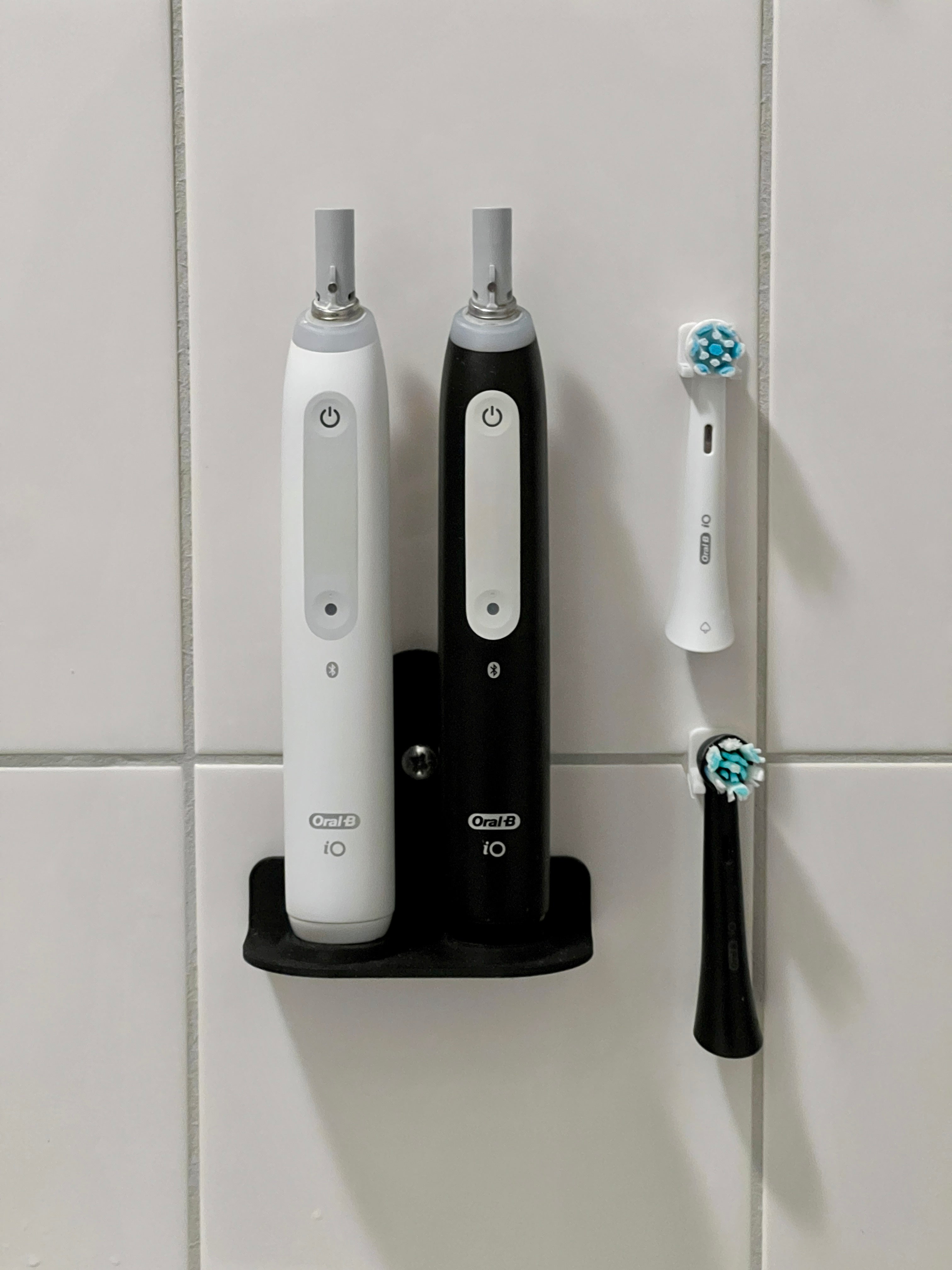 Väggfästet är utformat för enkel installation och kräver i första hand en skruv för säker fastsättning. För de som föredrar en lösning utan borrning kan monteringen även enkelt göras med dubbelhäftande tejp eller lim, vilket ger flexibilitet och enkel anpassning till din badrumsinredning. Håll ditt badrum organiserat och snyggt samtidigt som du säkerställer enkel åtkomst till din Oral-B-tandborste .