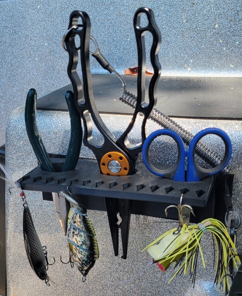 Denna praktiska fiskebåtsorganisatör är utformad för att hålla din fiskeutrustning, såsom krokar och tänger, prydligt organiserad och inom räckhåll. Den är ett perfekt tillskott för alla fiskare som vill optimera utrymmet och minimera skräp under fisket.