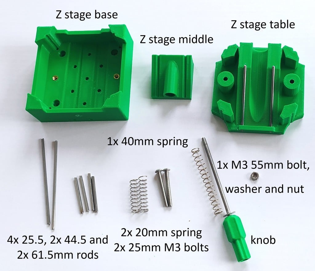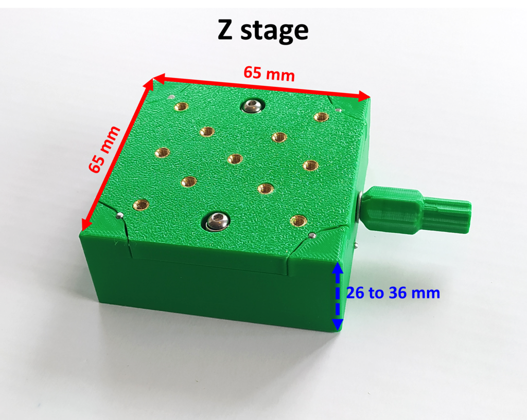 Det ortogonala tryckta linjära steget är designat för att leverera hög precision vid positionering, med en noggrannhet på cirka 10 mikrometer. Denna produkt är idealisk för forskningsprojekt eller applikationer där exakta rörelser är viktiga. Med sina 3D-printade delar och få mekaniska komponenter, såsom 2 mm metallstänger, en 40 mm fjäder och en 55 mm M3 bult med mutter och bricka, är detta linjära steg både enkelt och effektivt.