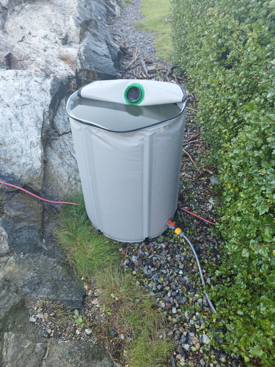 Denna regnvattenuppsamlare är utformad för att samla upp regnvatten från dina stuprännor. Vattenuppsamlaren kan samla upp regnvatten från stuprännor och skicka det till en behållare som placeras så högt som möjligt. Detta görs med hjälp av vattnets hydrostatiska tryck, vilket möjliggör pumplös bevattning. Vattenuppsamlaren har en lövfälla som förhindrar att löv kommer in i slangen.