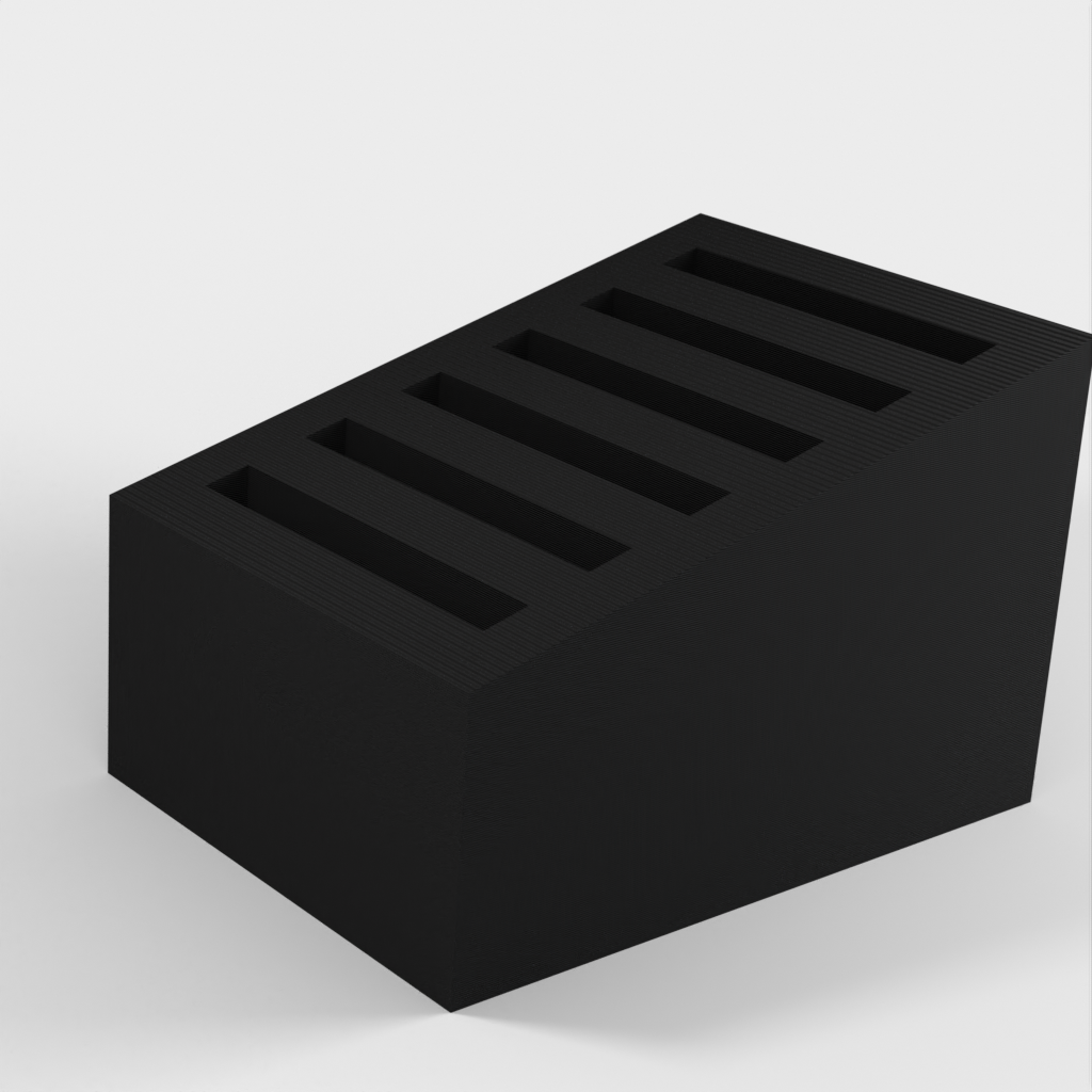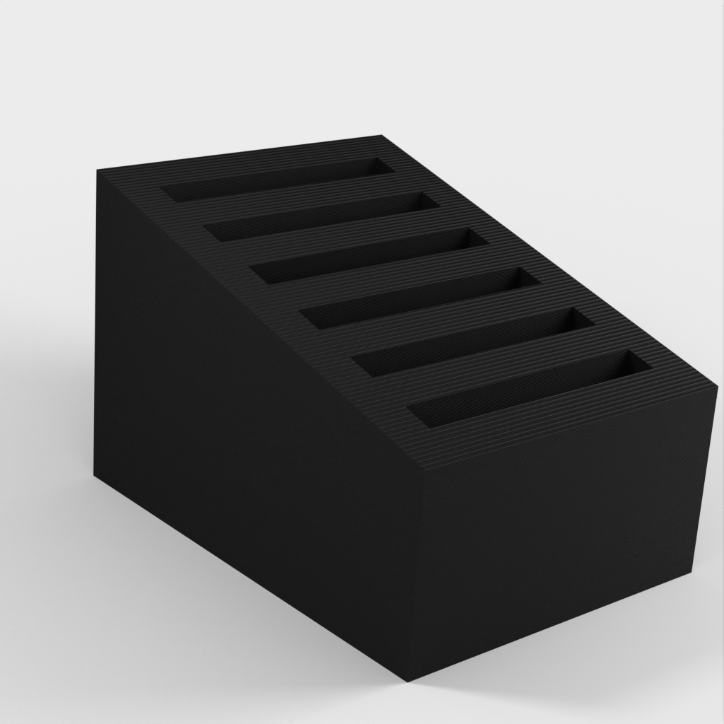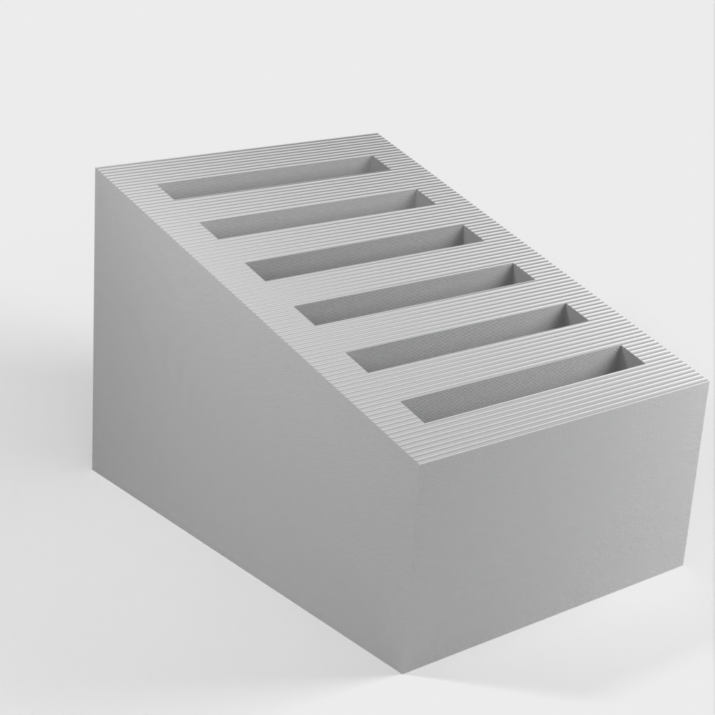 Parametrisk SD-korthållare är en uppgraderad version av jpcws SD-korthållare. Denna modell kan anpassas efter dina specifika behov. Den primära parametern är antalet luckor, men du kan även justera storleken på luckorna för en tightare eller lösare passform. Ytterligare justeringar såsom toppvinkeln framifrån till bak eller kortavståndet kan också ändras.