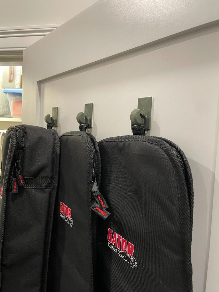 Parametrisk väggkrok designad för att enkelt hänga gitarrfodral i garderoben. Basen på galgarna passar 3M 1" dubbelsidig "permanent" monteringstejp. Fusion 360-filen är helt parametrisk och gör den lätt att anpassa: