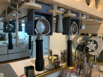Denna hållare säkerställer att din portafilter är säker och lättillgänglig när du brygger ditt favoritkaffe. Den hjälper till att hålla dina bänkskivor rena och bibehåller ett organiserat och rent utseende i ditt kök. Den är kompatibel med de flesta vanliga portafilter, inklusive de från populära kaffebryggare som Breville, och integreras sömlöst med ditt befintliga vinglasställ.
