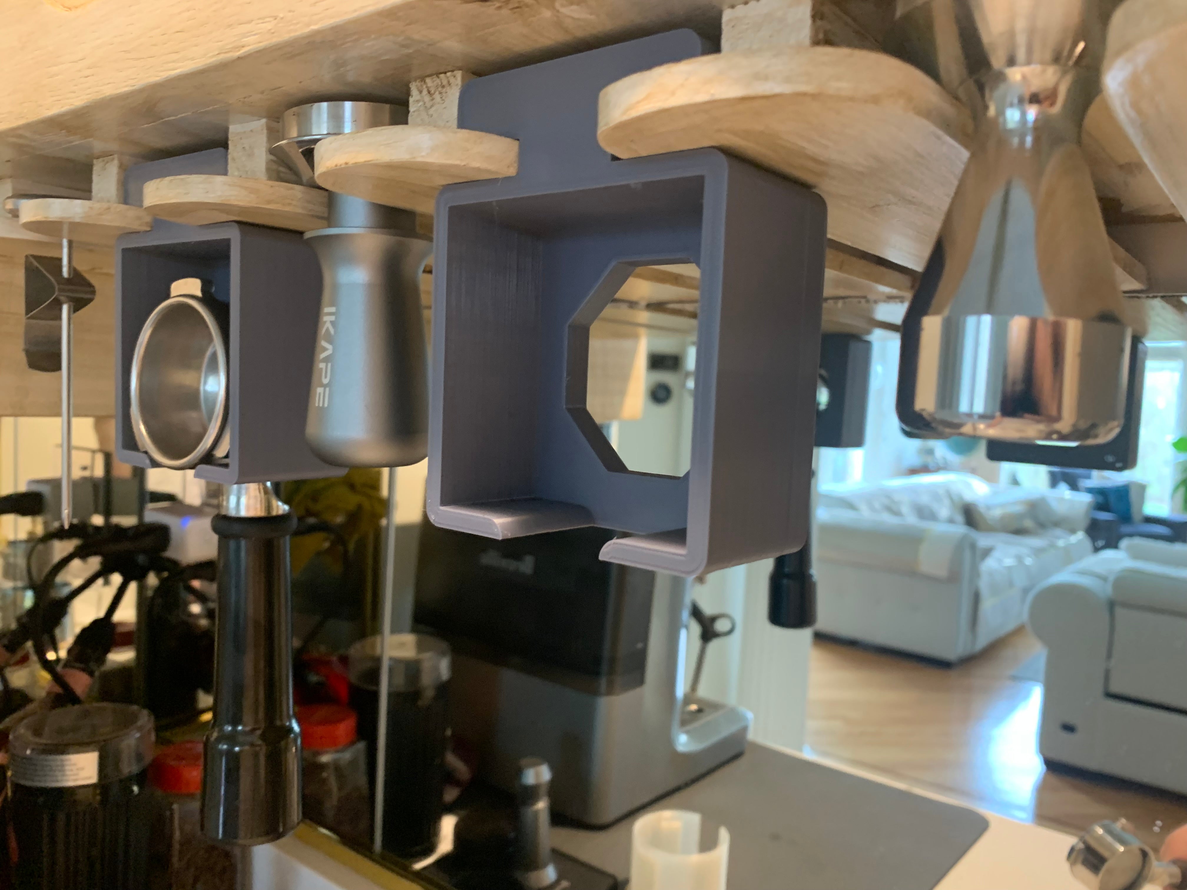 För kaffeentusiasten som värdesätter både funktionalitet och ett snyggt kök erbjuder denna smarta filterhållare en idealisk lösning. Utformad för att utnyttja det ofta förbisedda utrymmet under köksskåpet, där ett vinglasställ redan är installerat, förvandlar den det outnyttjade utrymmet till praktisk förvaring för din filterhållare.