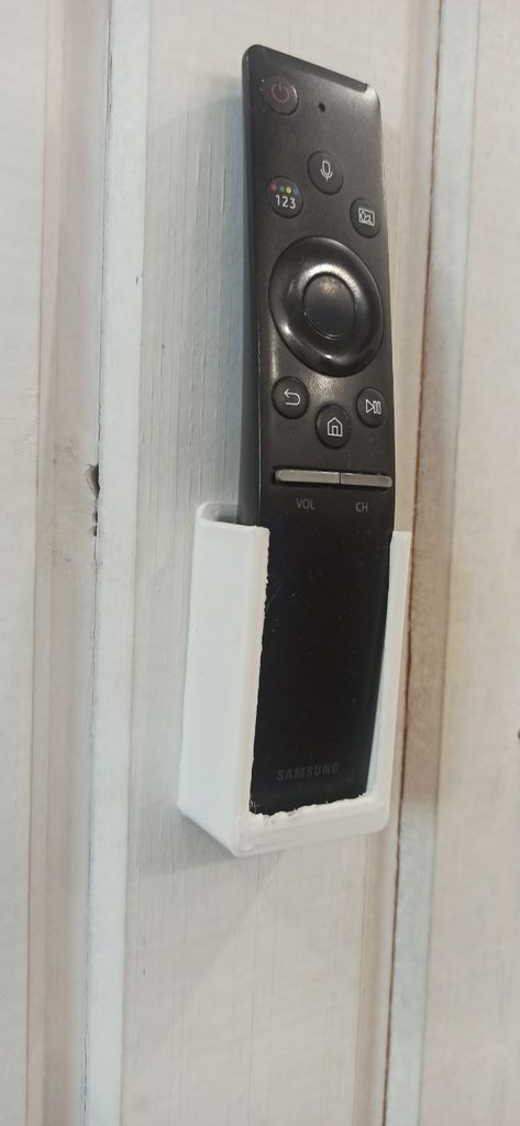 Denna praktiska hållare är utformad för att ge din Samsung-fjärrkontroll en särskild plats. Den hjälper till att hålla ordning i vardagsrummet eller sovrummet genom att säkerställa att din fjärrkontroll alltid är lätt att hitta. Med sin enkla design kan hållaren diskret integreras i de flesta hemmiljöer och erbjuder en funktionell lösning för förvaring av din fjärrkontroll.