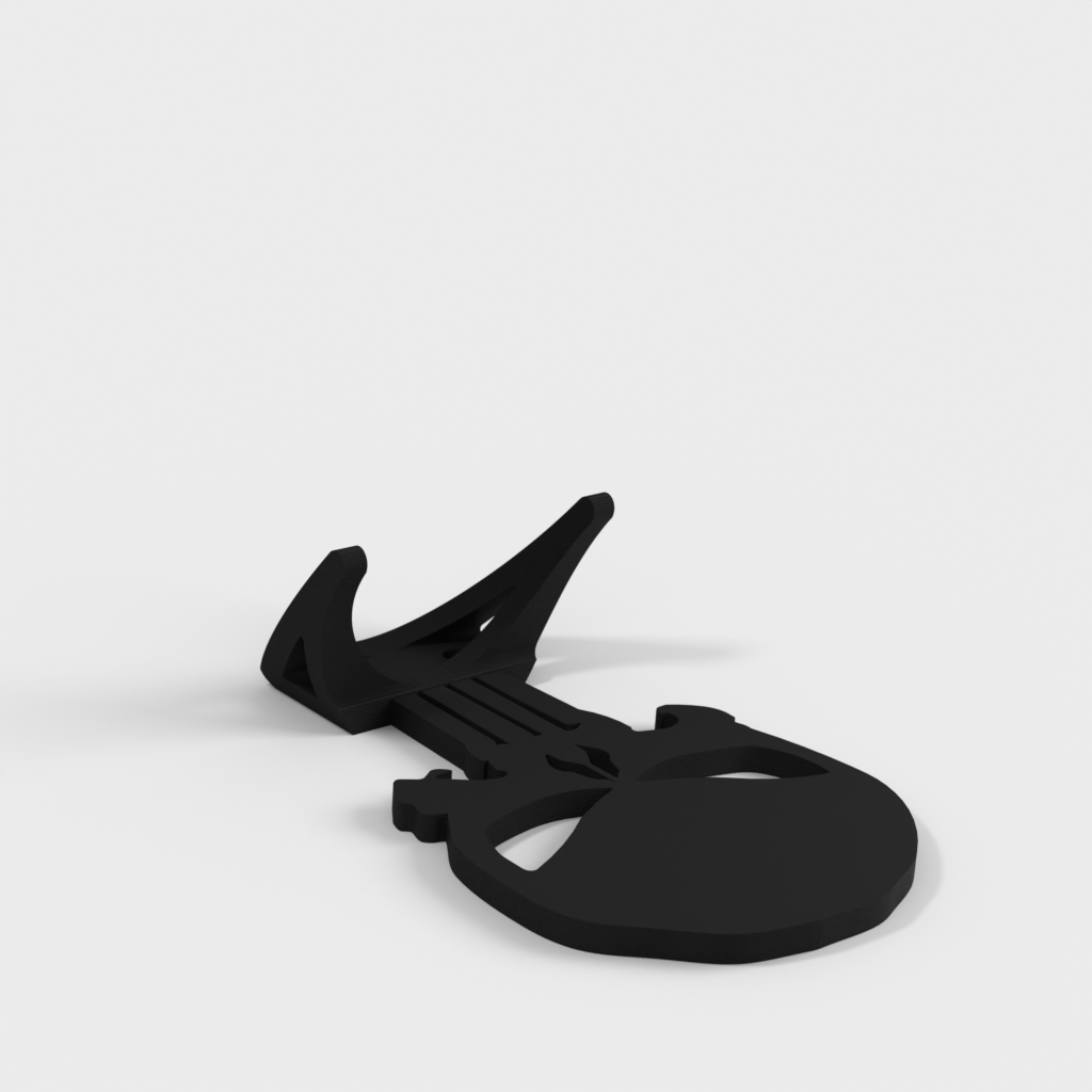 Detta väggfäste för skateboard är utformat för att ge en säker och estetisk lösning för förvaring av din skateboard. Med sin distinkta design som döljer skruvhålen på Punisher-huvudet, ger det ett strömlinjeformat och rent utseende på väggen. Detta väggfäste för skateboard från Punisher mäter cirka 21,5 x 13,5 cm och är lämpligt för att visa upp både vanliga skateboards, longboards och elektriska skateboards. Det är ett praktiskt sätt att hålla din utrustning organiserad samtidigt som du visar upp den som en del av din inredning. För att säkerställa optimal stabilitet kan en liten mängd 3M utomhustejp användas för att hålla den övre delen platt och i jämnhöjd med väggen, vilket ger en robust lösning för din skateboard.