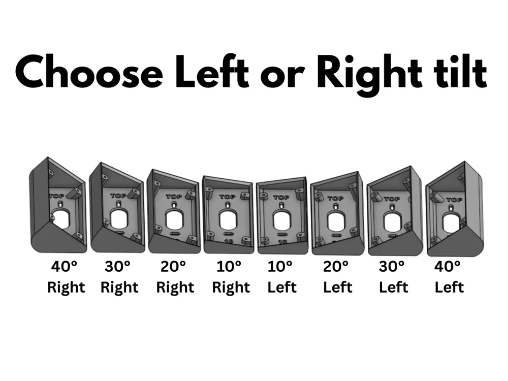 Vinklar på 10°, 20°, 30° och 40° ger flexibilitet för justering, vilket är särskilt användbart för installationer i trånga utrymmen eller nära fönster. Med en väl genomtänkt design kan detta fäste enkelt passa Ring-modellen, som har ett inbyggt batteri med en sluttande baksida och asymmetrisk placering av monteringshål.