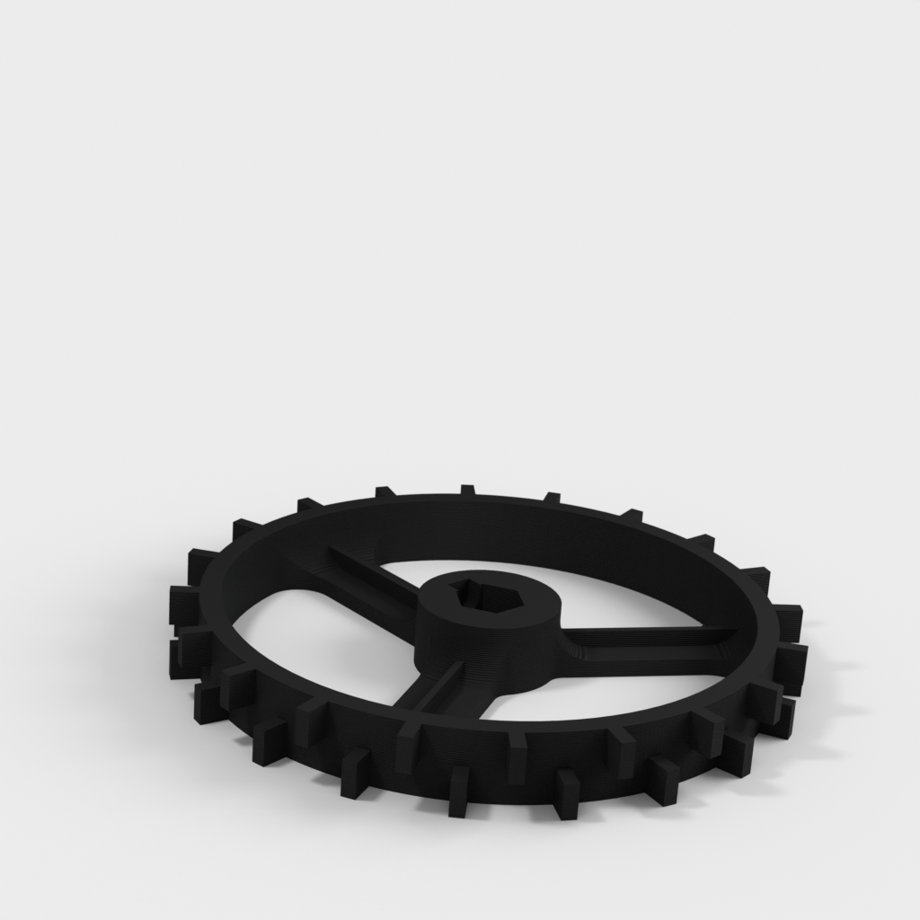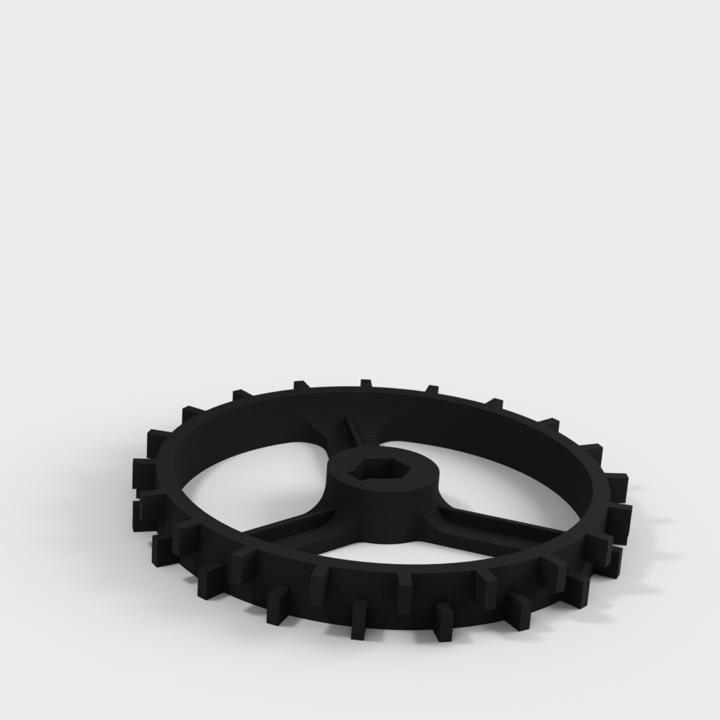 Uppgradera ditt gör-det-själv-robotgräsklipparprojekt med detta hållbara och funktionella hjul. Det är utformat för att passa "mwetterlind"-chassit och är idealiskt för att ge stabilitet och rörelse åt din robotgräsklippare. Oavsett om du följer de specifika designspecifikationerna eller experimenterar med andra chassin, som till exempel "standard" Liam-chassit, kommer detta hjul att bidra till att din robotgräsklippare presterar optimalt.