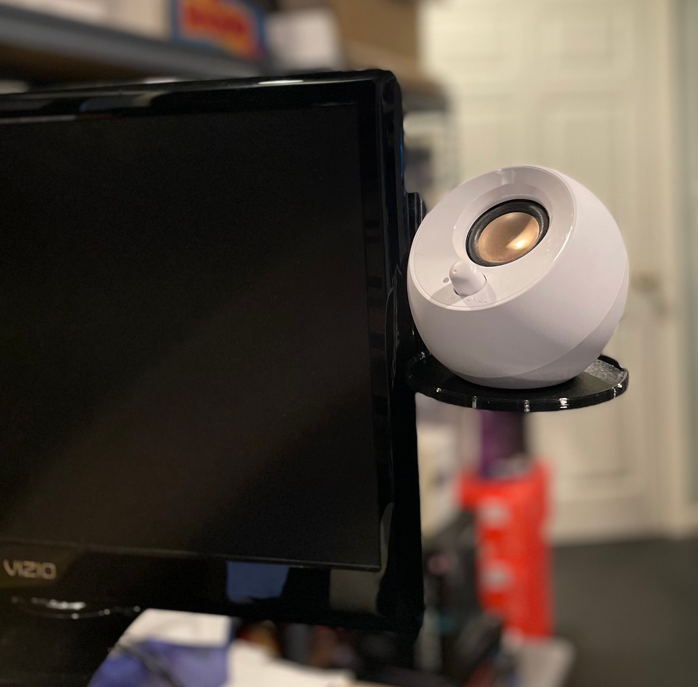 Denna praktiska, runda högtalarhylla är utformad för att montera dina högtalare direkt på sidan av din skärm. Den är idealisk för högtalare med en diameter på upp till 115 mm (cirka 4,5 tum), vilket säkerställer en stabil och säker placering. Genom att höja dina högtalare till skärmnivå säkerställer hyllan en optimal ljudupplevelse, där ljudet når dig direkt och förbättrar klarheten, oavsett om du arbetar, spelar eller lyssnar på media.
