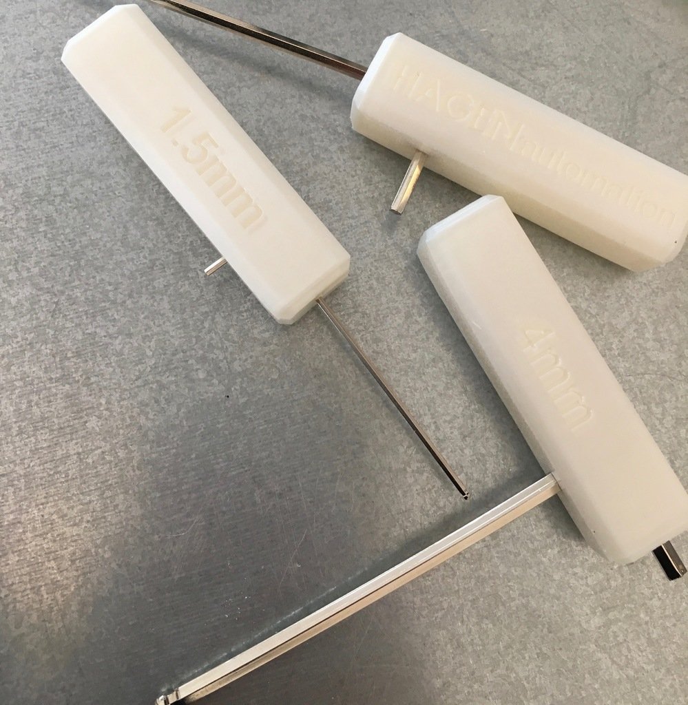 Detta är en uppsättning handtag som passar metriska sexkantnycklar (insexnycklar) i storlekarna 1,5 mm, 2 mm, 2,5 mm, 3 mm och 4 mm (samma storlekar som du får med många 3D-skrivare). De är mycket enkla och lätta att använda, och kan användas antingen i ett T-handtag eller som en skruvmejsel. Det finns ingen anledning att skära ner dina insexnycklar och du kan enkelt ta bort nyckeln för normal användning.