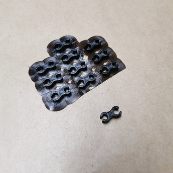 Denna kabelklämma är utformad med två specifika diametrar, den större anpassad för bromsvajrar (5,1 mm) och den mindre för växelvajrar (4,3 mm), och säkerställer en exakt passform för Shimanos kabelsystem. Även om den främst är avsedd för Shimano, kan den potentiellt passa andra märken med liknande vajerdiametrar. Den bidrar till effektiv vajerhantering och en mer organiserad front på din cykel, särskilt användbar för MTB och liknande typer av cyklar där rörelser och vibrationer är vanliga.